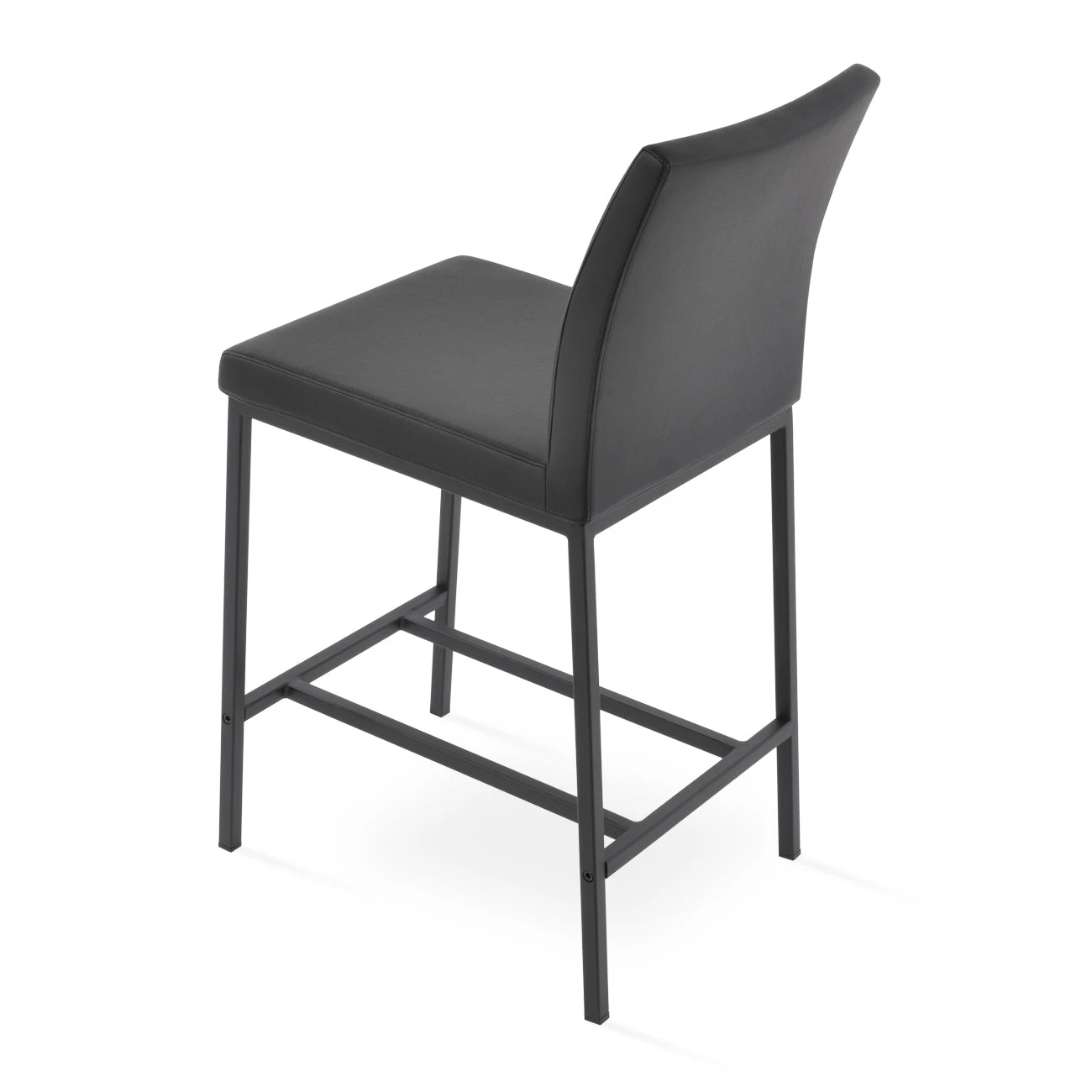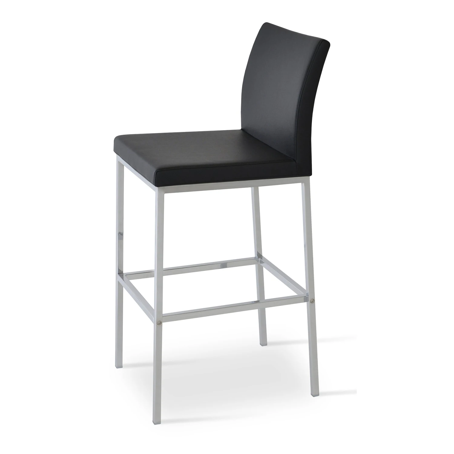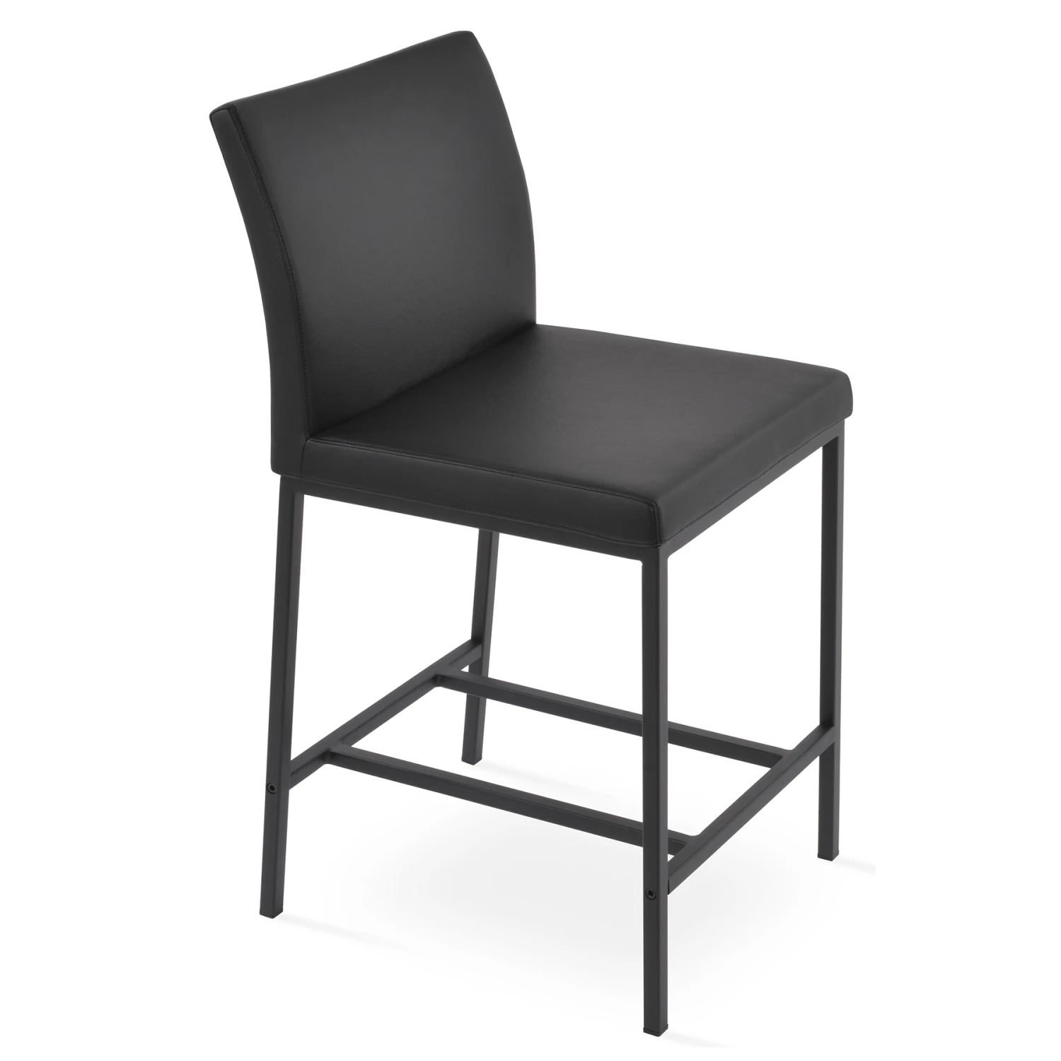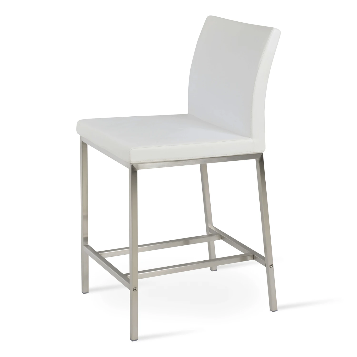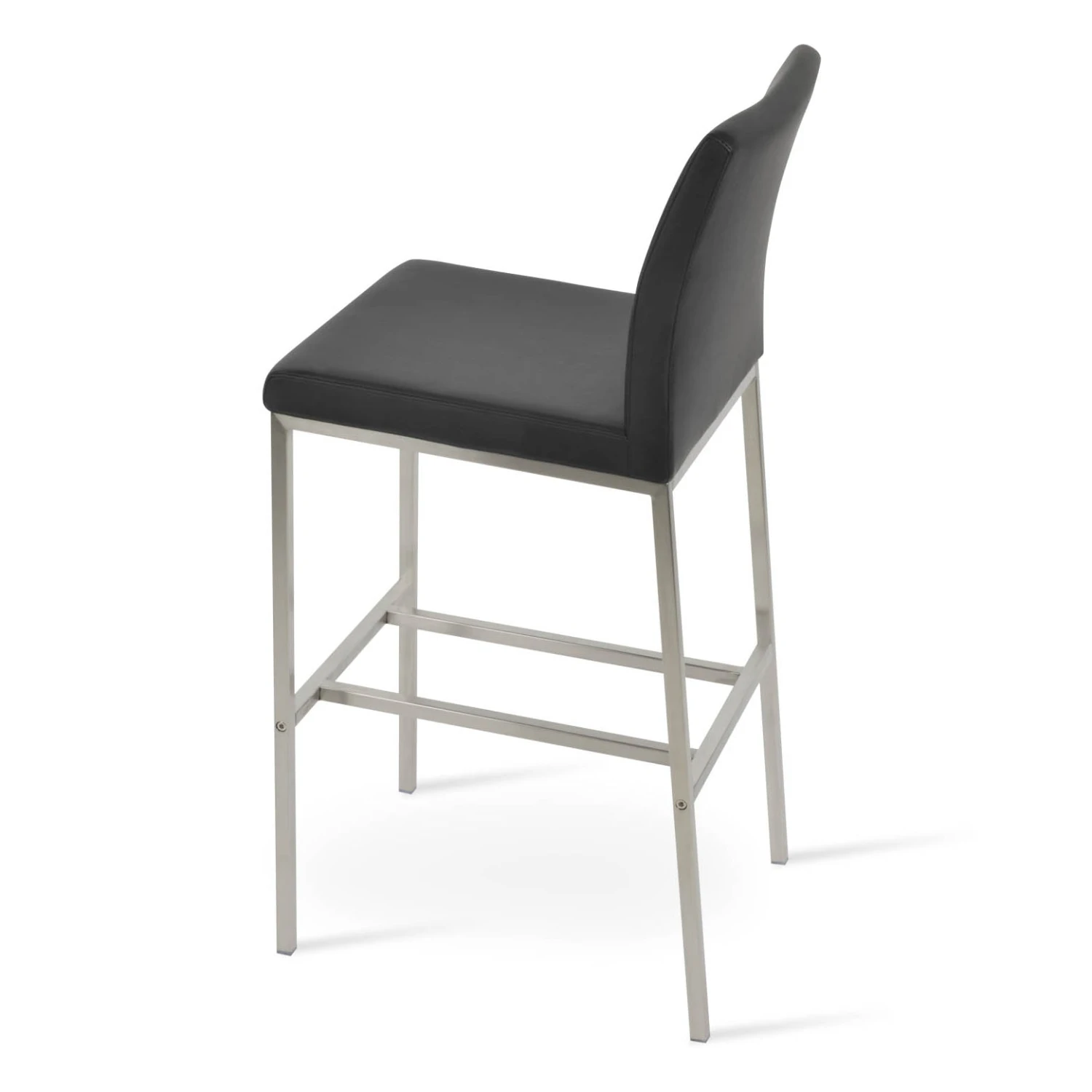 The Aria Metal Stool is a contemporary counter and bar stool with a comfortable upholstered seat and backrest on steel legs which are plastic tipped. This steel frame is molded by an injecting polyurethane foam.