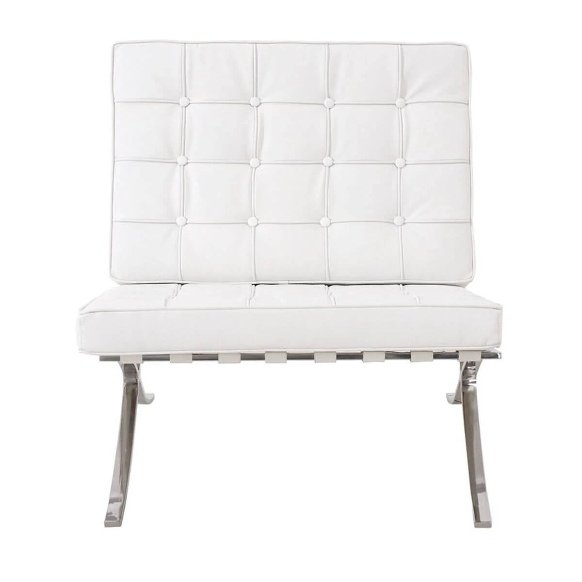The Barcelona Lounge Chair has a foam seat and back covered in bonded leather upholstery with stainless steel base. The Barcelona is available in black or white and is a classic lounge chair that would look perfect in almost any setting.