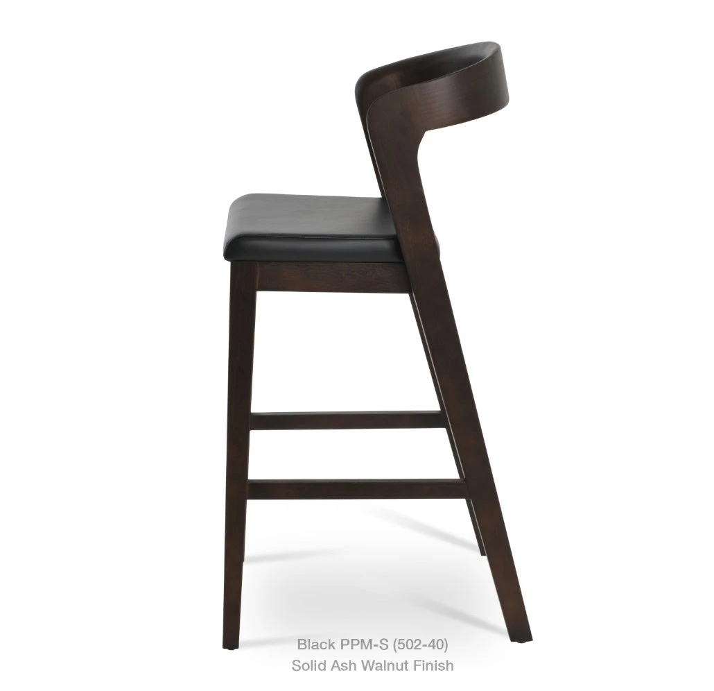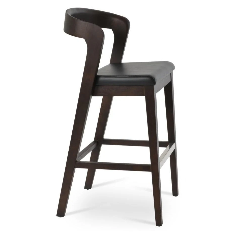 The Barclay Stool is a contemporary stool with a black leatherette upholstered seat and a solid beech walnut wood frame. Barclay Stools are available as a counter stool and bar stool and are great for both residential and commercial use.