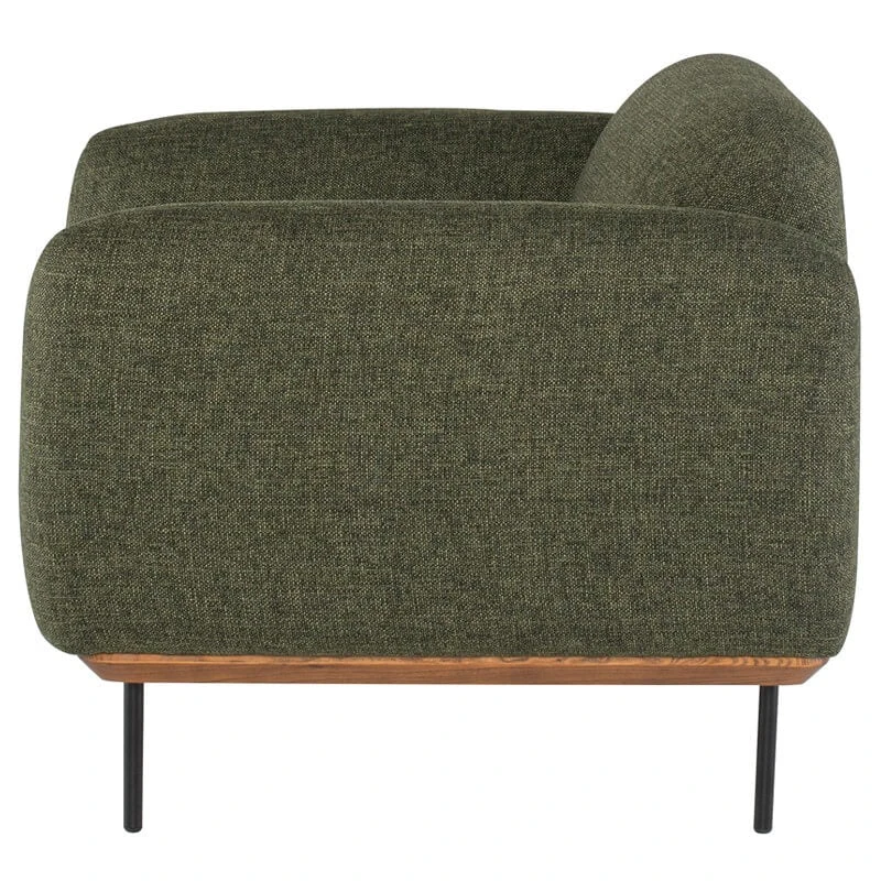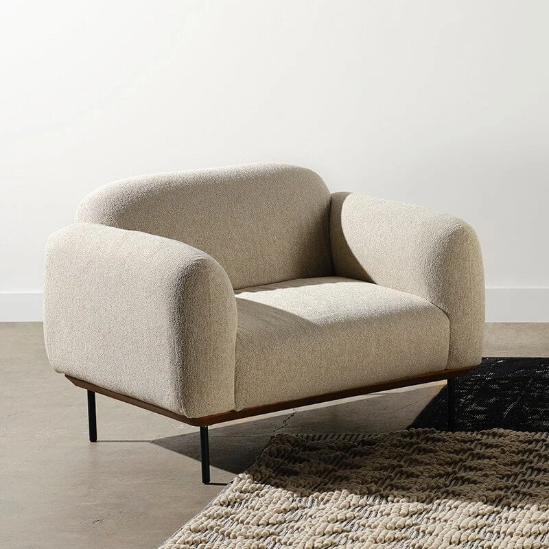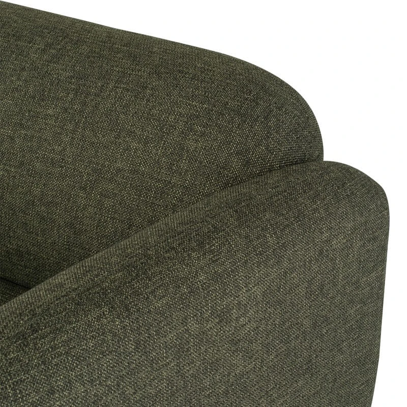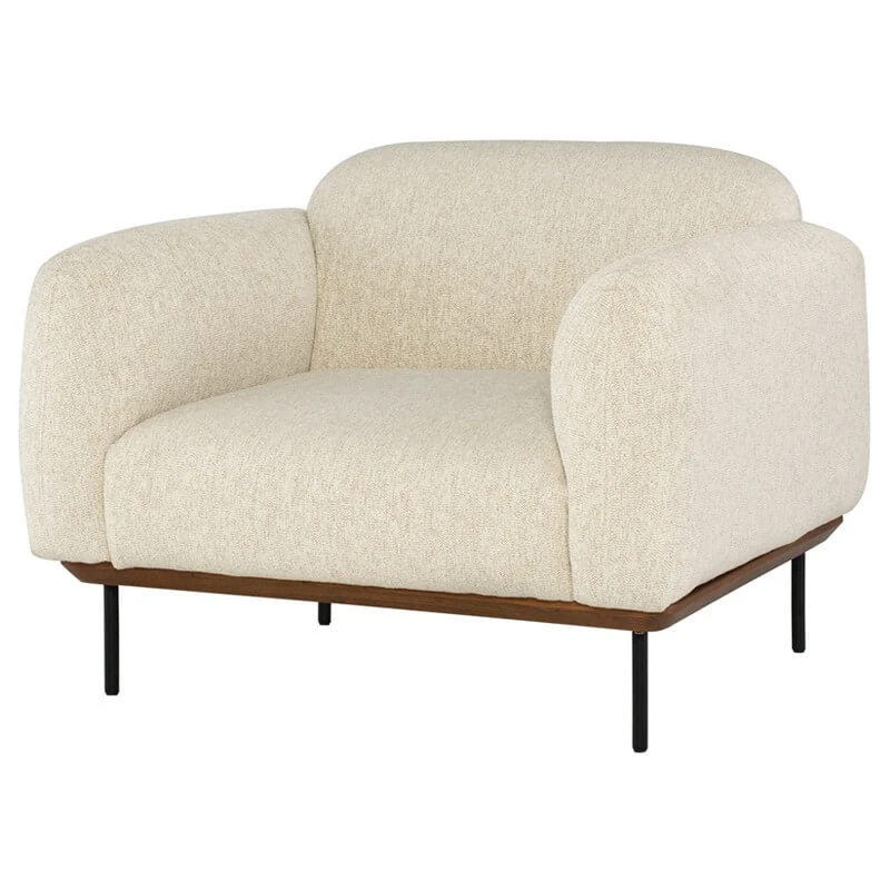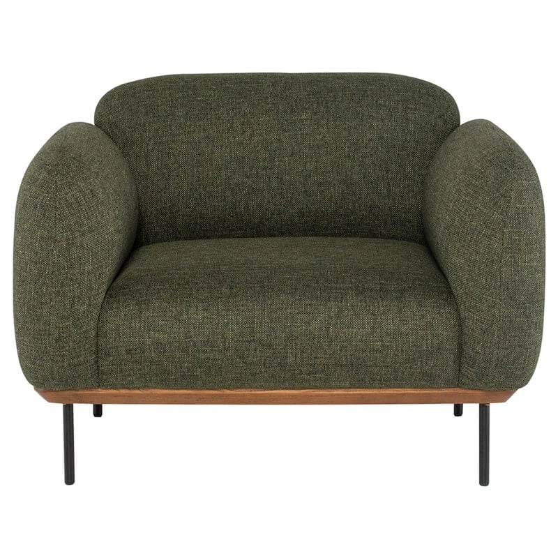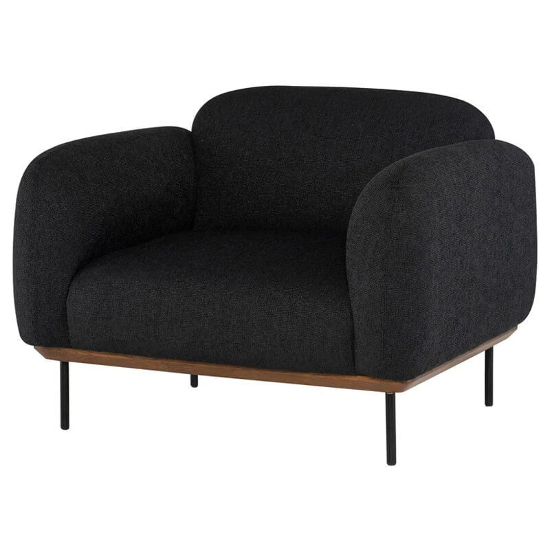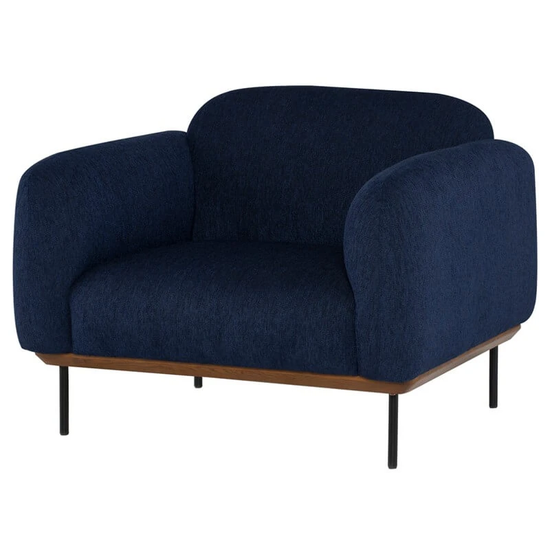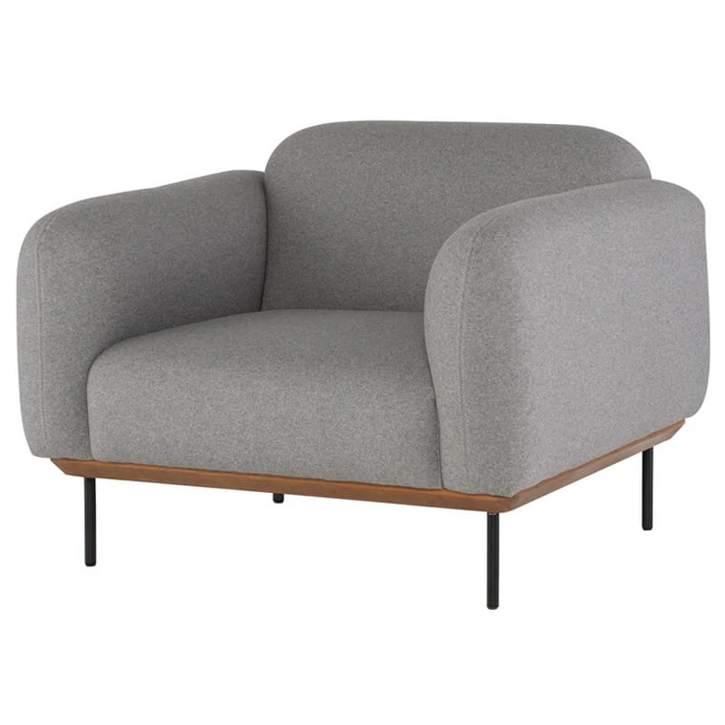 The gracefully composed, Benson Occasional Chair exemplifies sculptured minimalism, neat rounded upholstery is secured to a subtle streamlined solid-wood frame, the entire frame supported by four discreet legs.