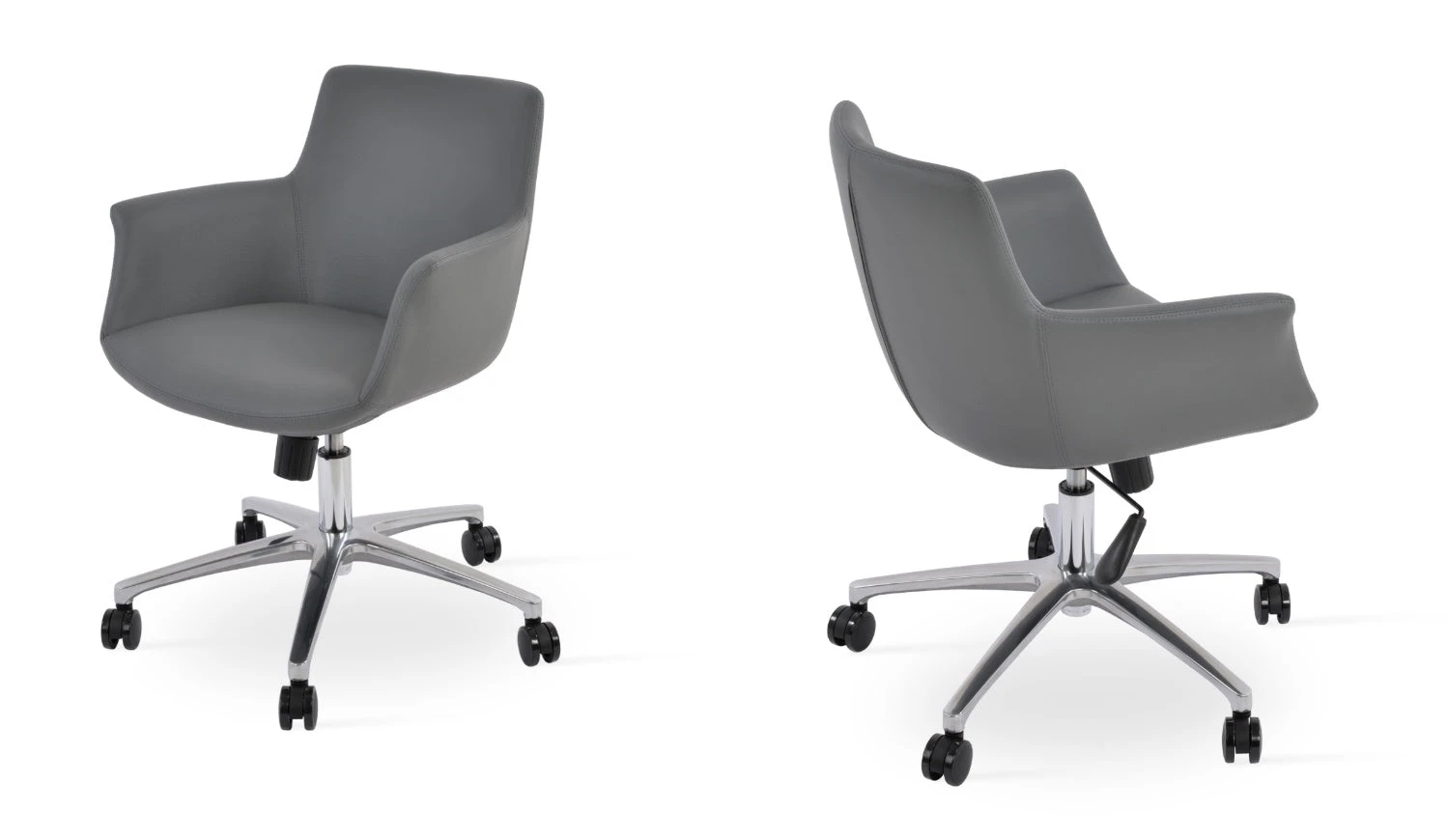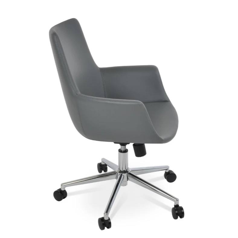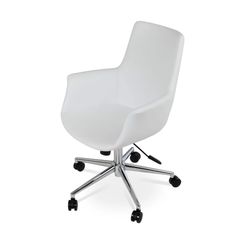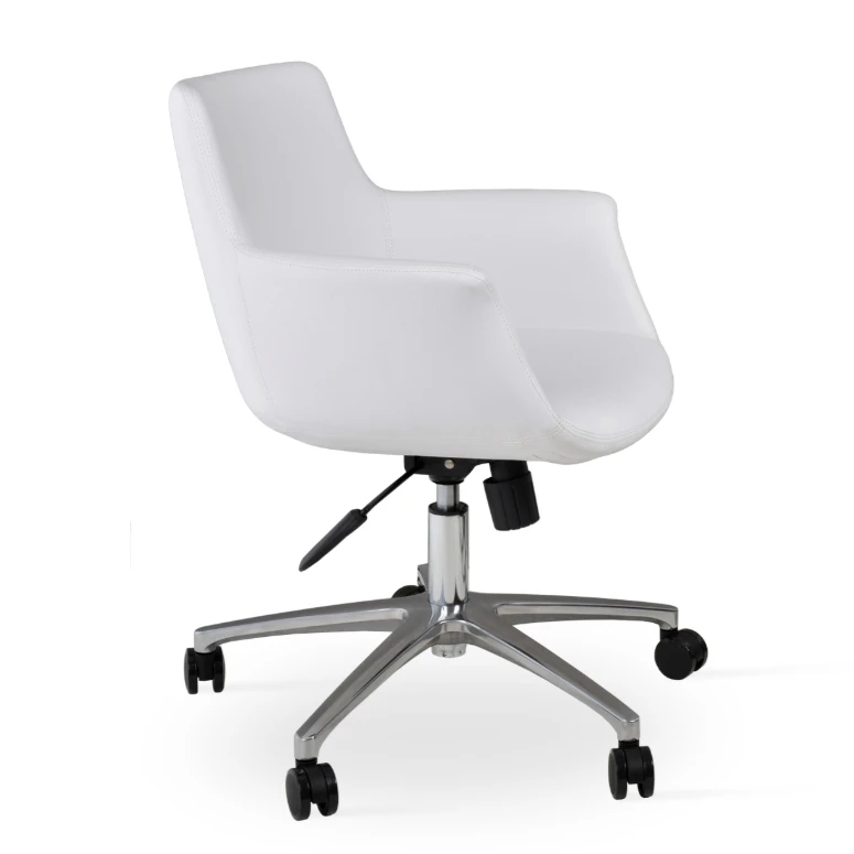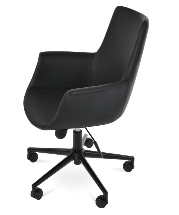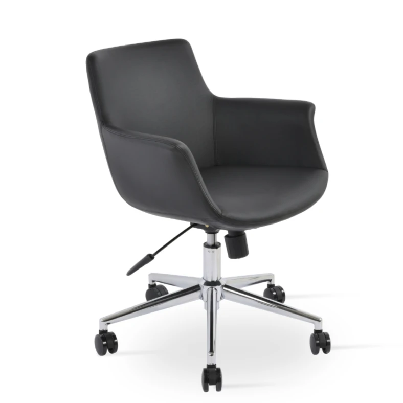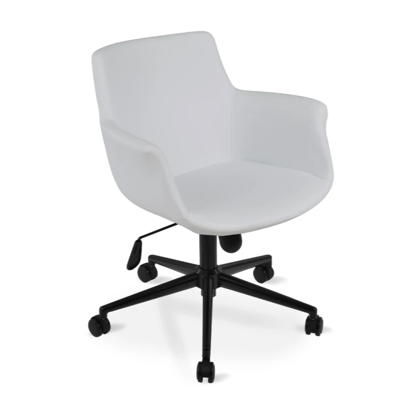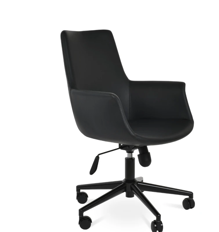 The Bottega Arm Office Chair is a contemporary chair with a comfortable upholstered seat and backrest on a height-adjustable gas piston base that swivels and tilts. The chair has a steel five-star base with plastic casters. The seat has a steel structure with “S” shape springs for extra flexibility and strength. This steel frame molded by injecting polyurethane foam. Bottega seat is upholstered with a removable zipper enclosed leatherette slipcover. The Bottega Arm Office Chair is perfect for home and commercial use.