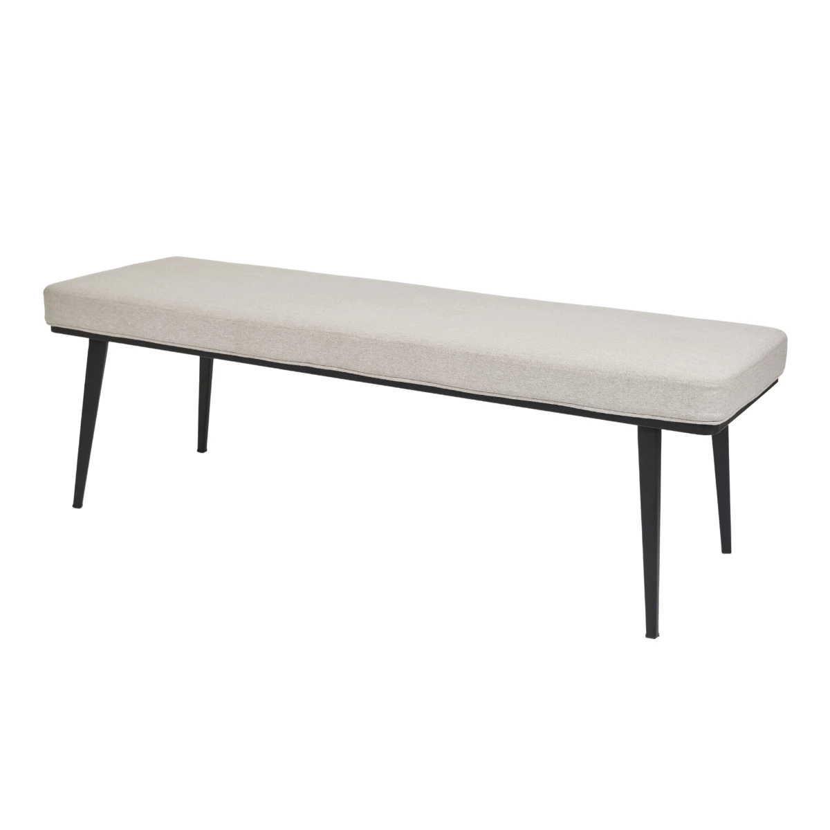 The Bradley Bench has a simple top and powder-coated matte black metal base. It’s great for the foot of a bed or as an accent piece. The Bradley is available with a dove or graphite fabrics and grey or white leatherettes.