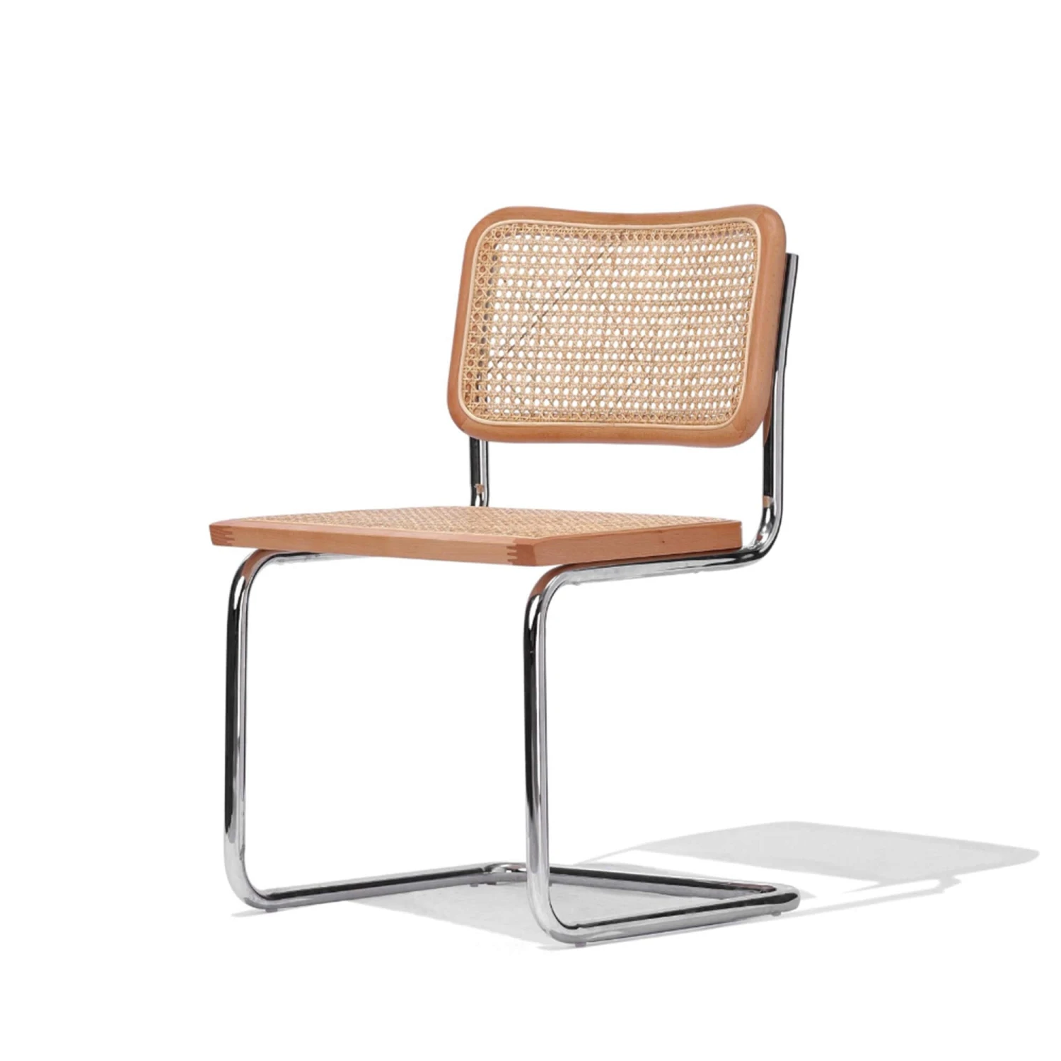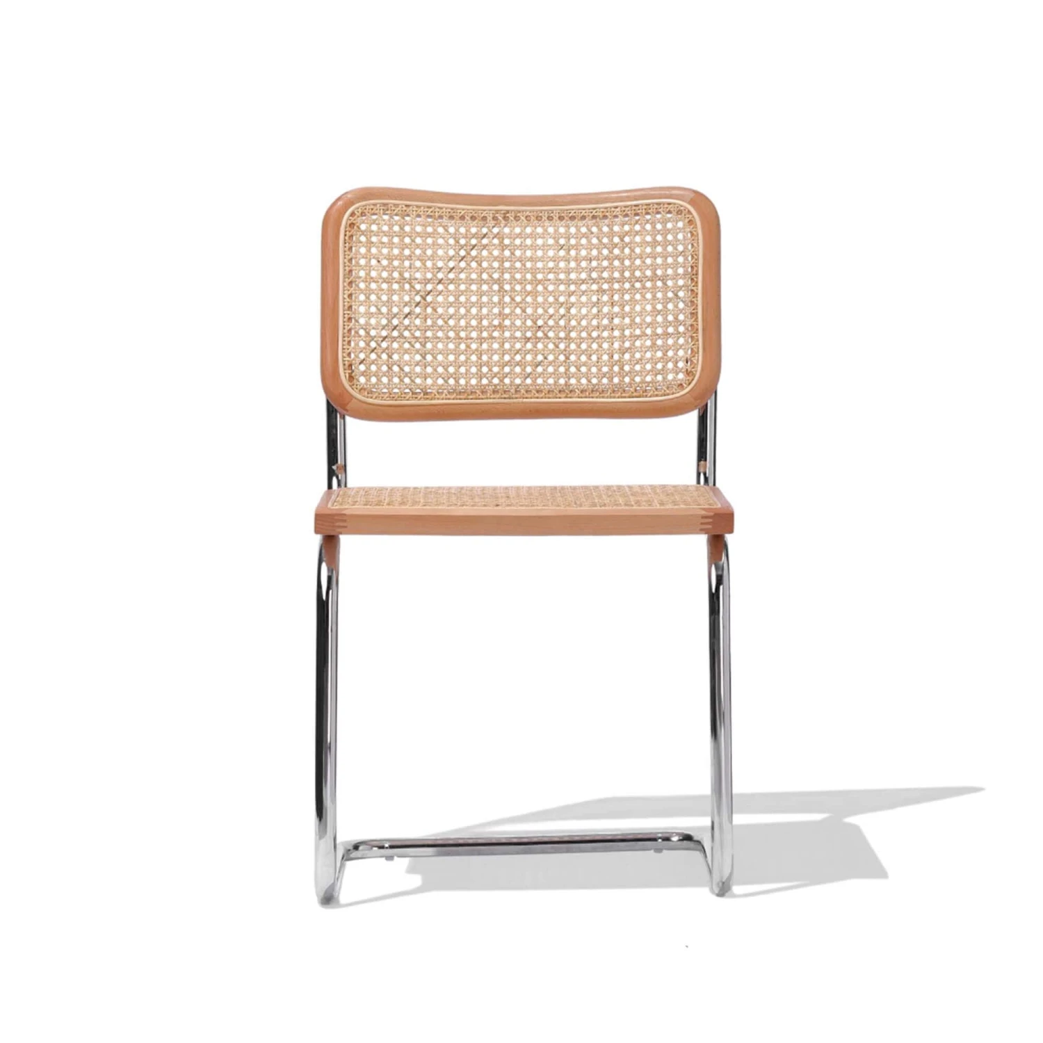 The Cesca Dining Side Chair has cantilevered stainless chrome design is perfect for casual dining spaces. The perfectly balanced chrome tube frame provides sturdy support for the woven rattan seat. A durable beech veneered frame surrounds the woven rattan back and seat.