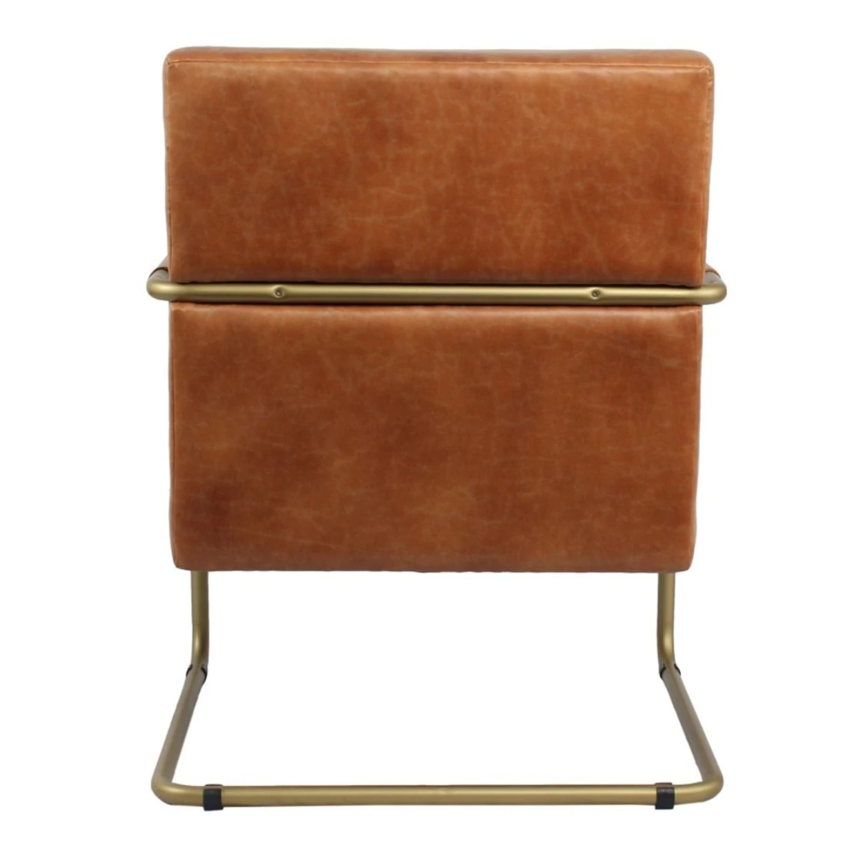 The Clayton Lounge Chair is a funky occasional chair available in tan or khaki bonded leather with a metal brushed gold frame. It’s great for home or commercial settings.