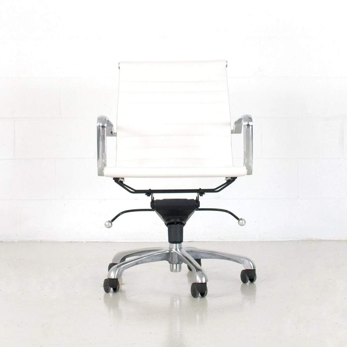 The Crane Low Back Office Chair is available in two leatherette options with an adjustable aluminum base. It’s great for the home office or commercial settings.