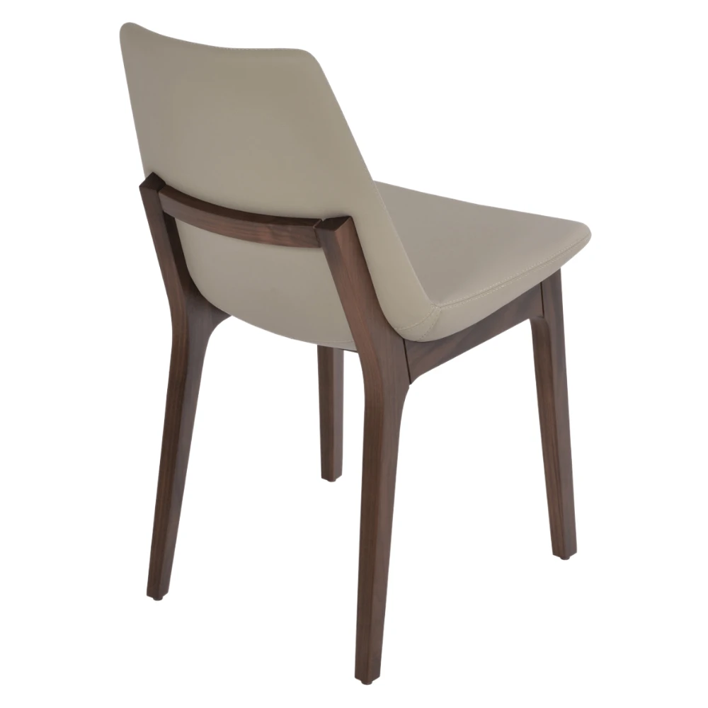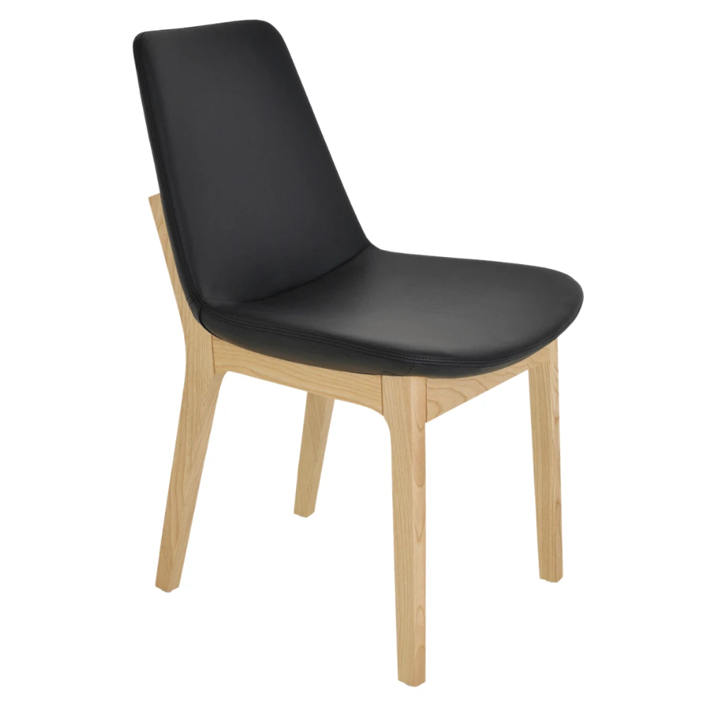 Eiffel Wood is a contemporary chair with a comfortable upholstered seat and backrest on a solid walnut beech. The seat has a steel structure with “S” shape springs for extra flexibility and strength. This steel frame is molded by an injecting polyurethane foam. Eiffel seat is upholstered with a removable velcro, enclosed leather, PPM, leatherette, wool as well as Camira organic wool slip cover.
