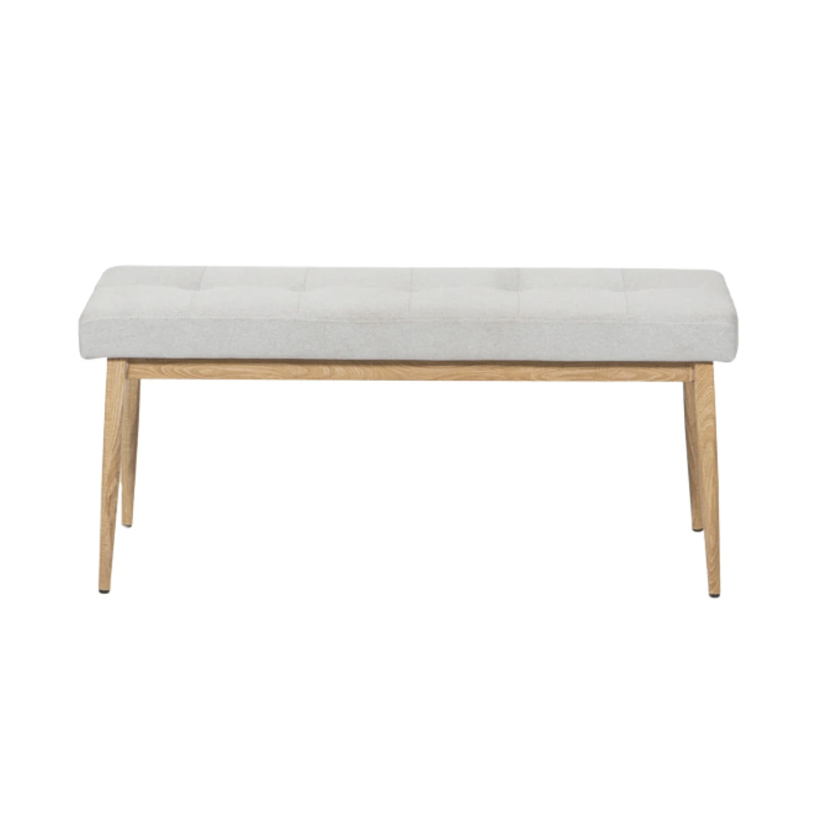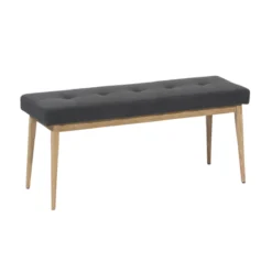 The Fischer Bench is a mid-century modern style bench with a faux wood base and tufted seat. Great to accompany any dining table, foot of the bed, or alone as an accent piece. The Fischer is available with a dove or graphite fabric on either a white oak or dark walnut metal base.