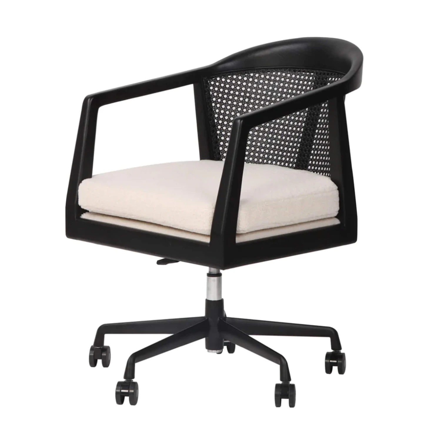 Look and feel great while working! This office chair is the perfect choice for the home or office. Featuring thick padding, a rattan back, and dual wheels that make rolling across any surface a breeze. For any home office or business, these offer a refined look that combines beauty, chic, and durability.