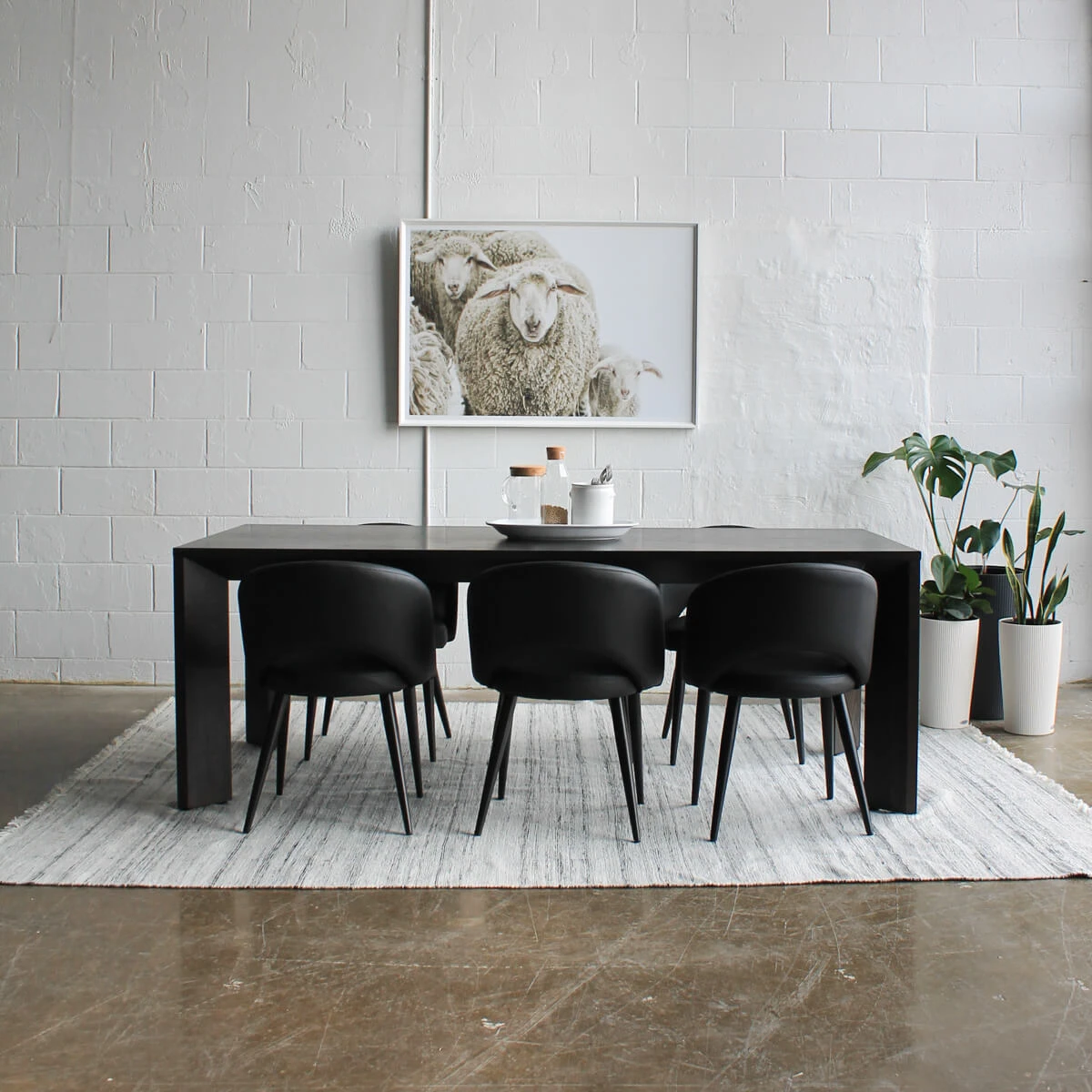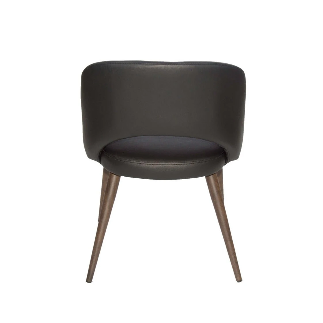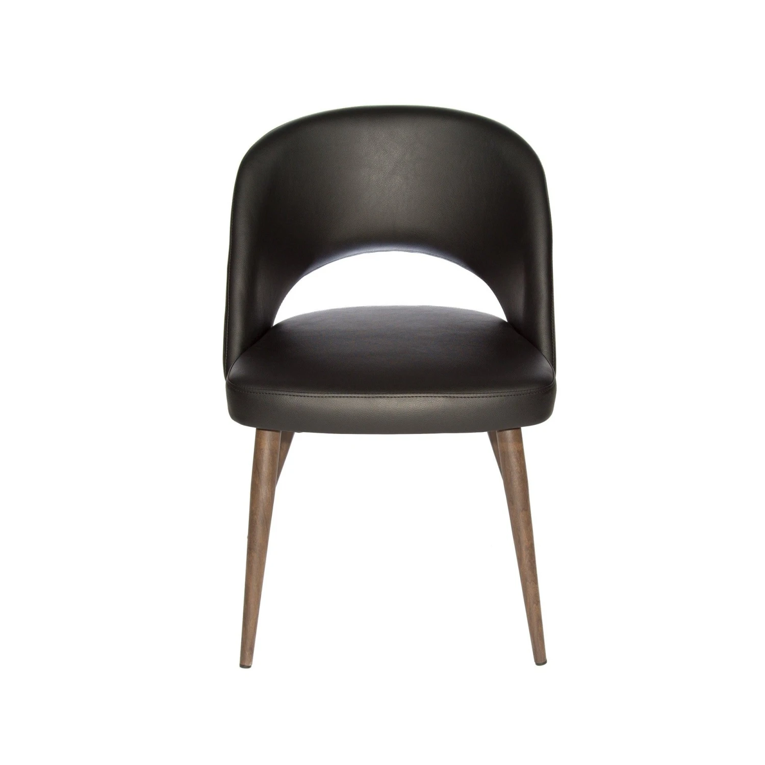 The Henrik Dining Chair encompasses a classic mid-century modern look but constructed with 21st-century materials. The Henrik Dining Chair is available in black leatherette with a walnut base, grey leatherette with a black beta base, and slate fabric with a white oak base. The Henrik is great for residential and commercial.