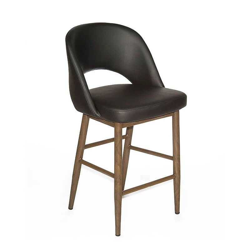 The Henrik Stool encompasses a classic mid-century modern look, though constructed with 21st-century materials. The Henrik is available as a counter stool and bar stool in 4 leatherettes and a fabric seat on a black walnut metal base. It’s great for home and commercial settings.