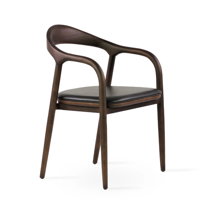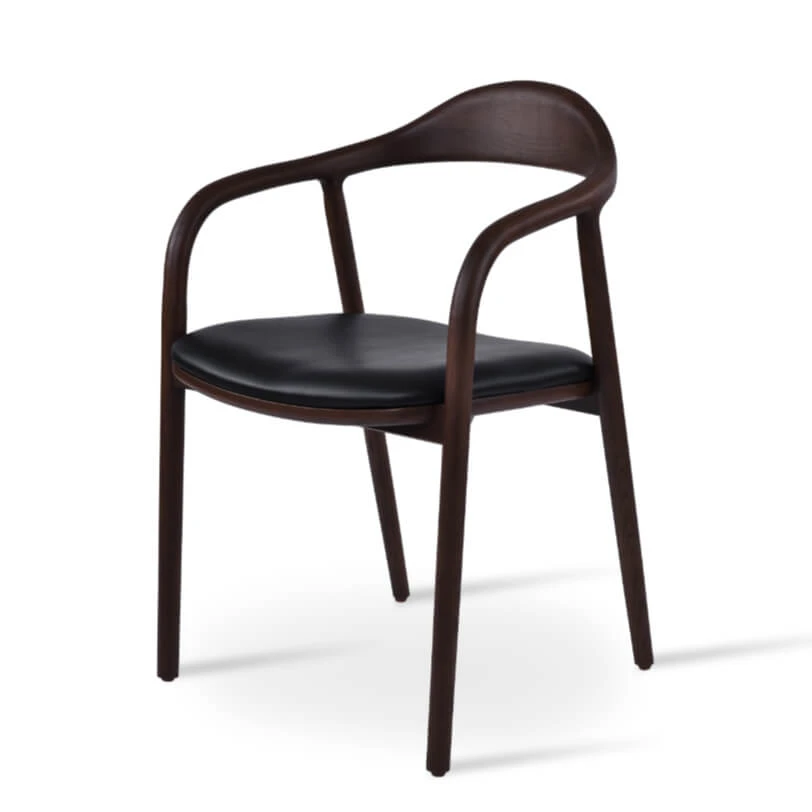 Infinity Arm Chair has industrial styling and features a black leatherette / PPM upholstered seat. The legs and frame are solid ash finished in walnut. It’s suitable for both residential and commercial use.