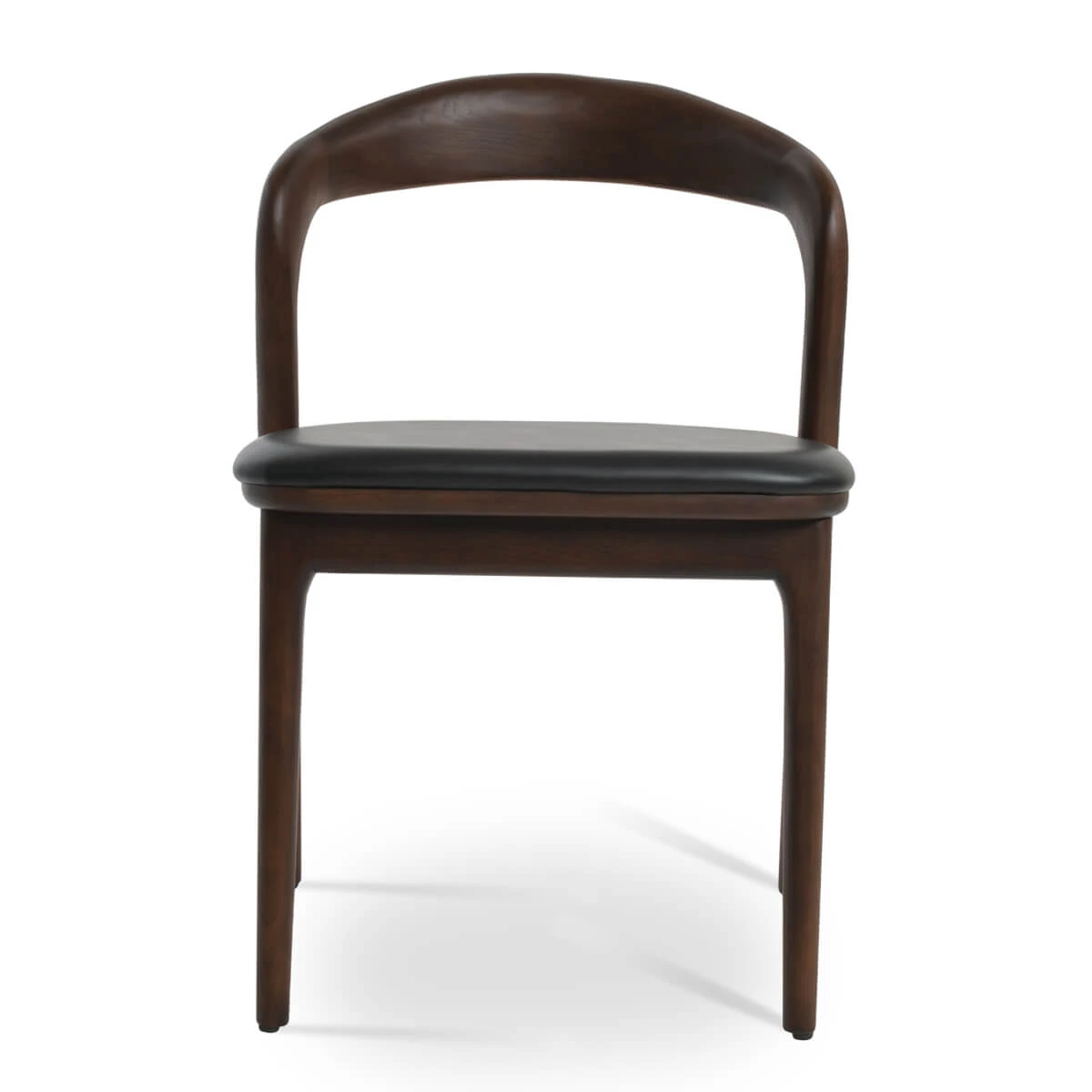 The Infinity Dining Chair has an industrial style featuring a black leatherette upholstered seat. The legs and frame are finished with solid ash finished in walnut. The Infinity is suitable for both residential and commercial use.
