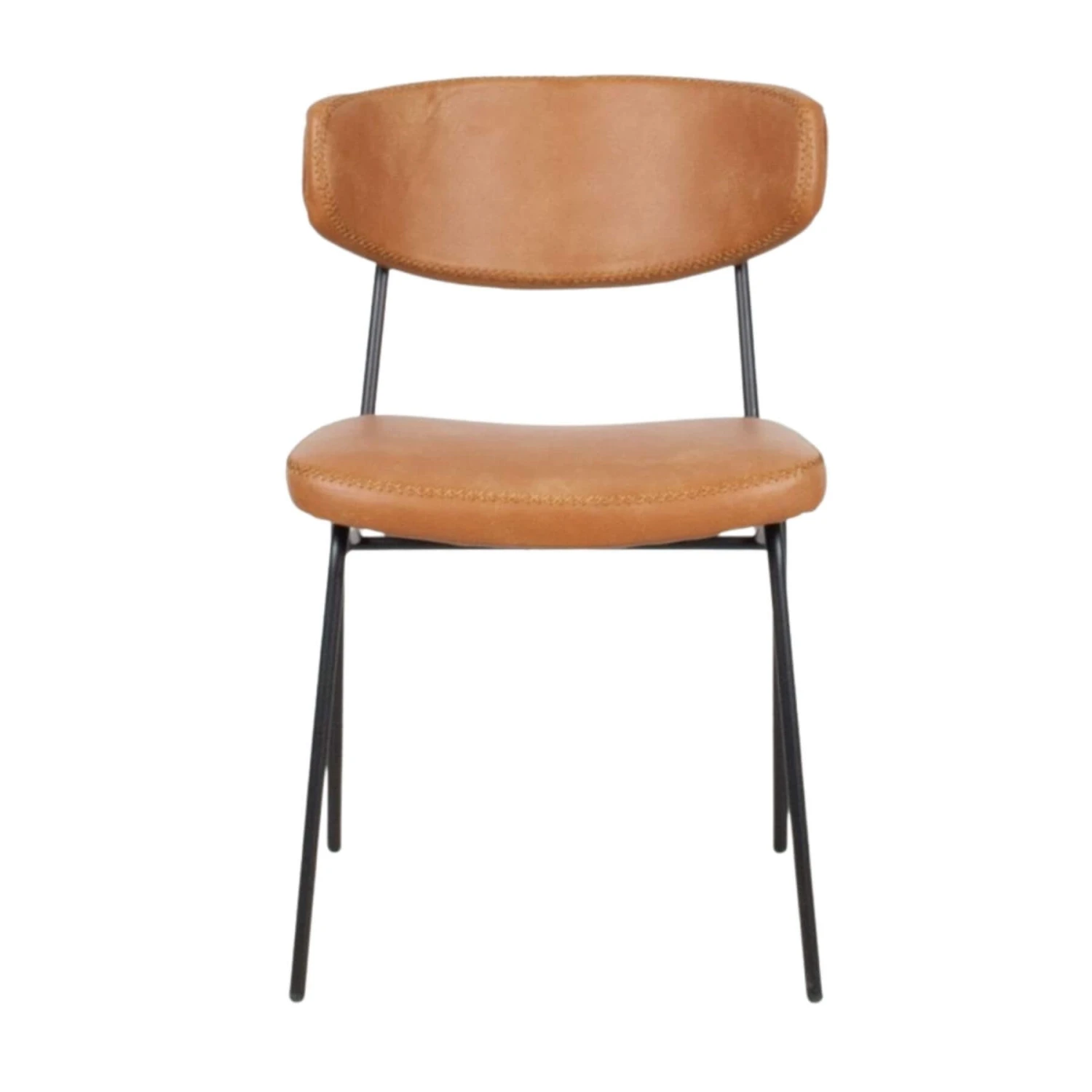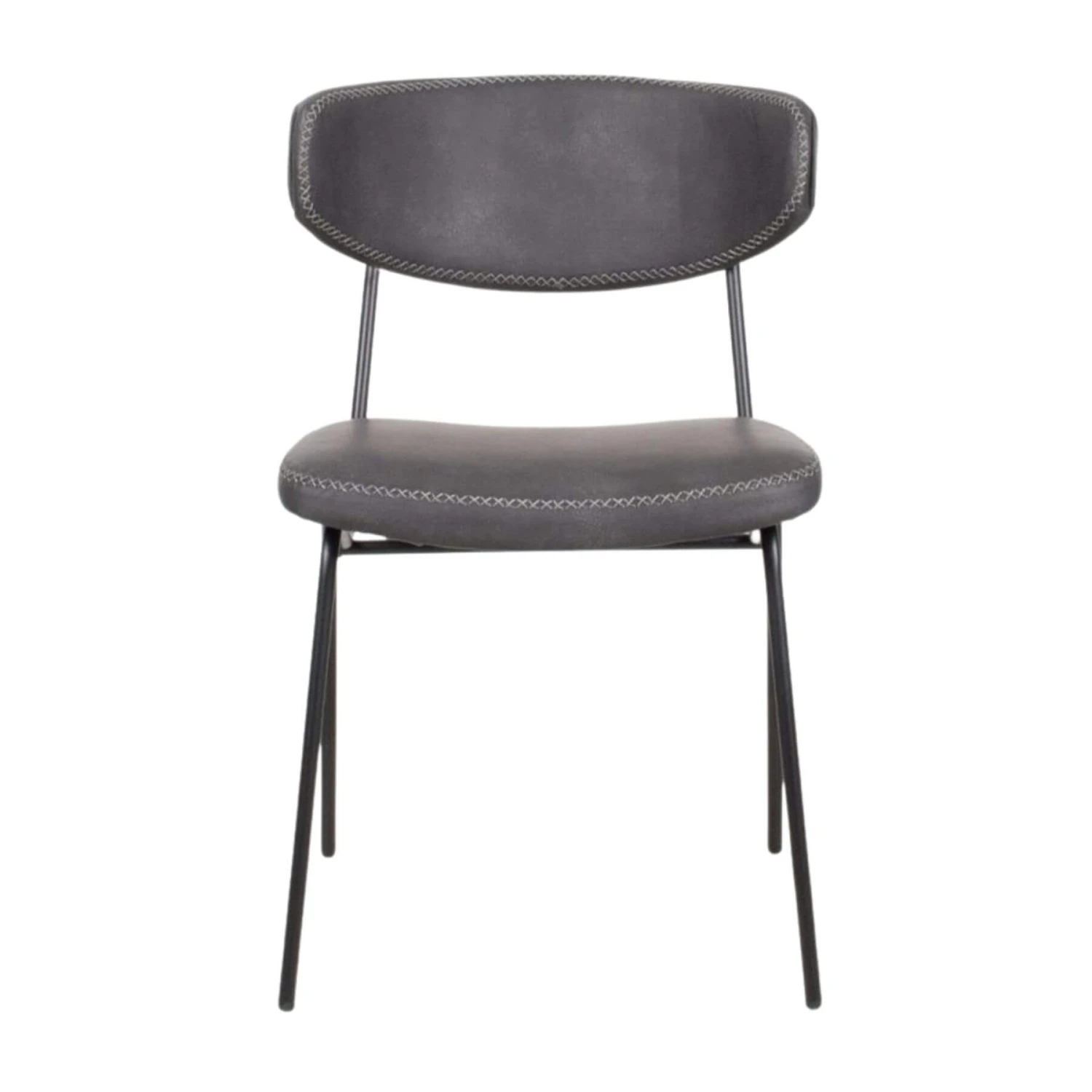 The Ingrid Dining Chair is a contemporary take on a mid-century modern chair. This piece blends a powder-coated metal frame with a sleek upholstered leatherette seat and back. It’s perfect for residential use.