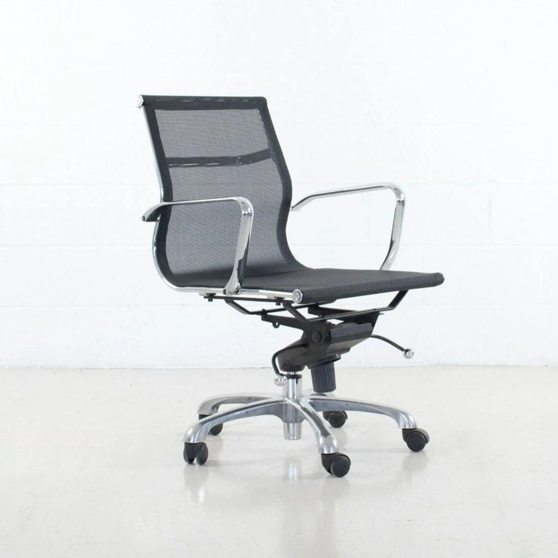 The Low Back Mesh Office Chair is available in two nylon colours with an aluminum adjustable frame. It’s great for the home office or commercial settings.