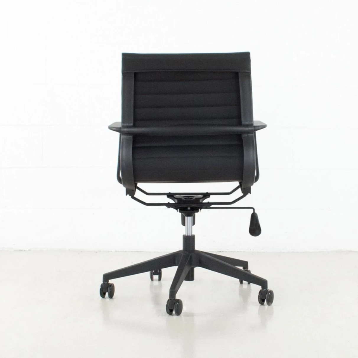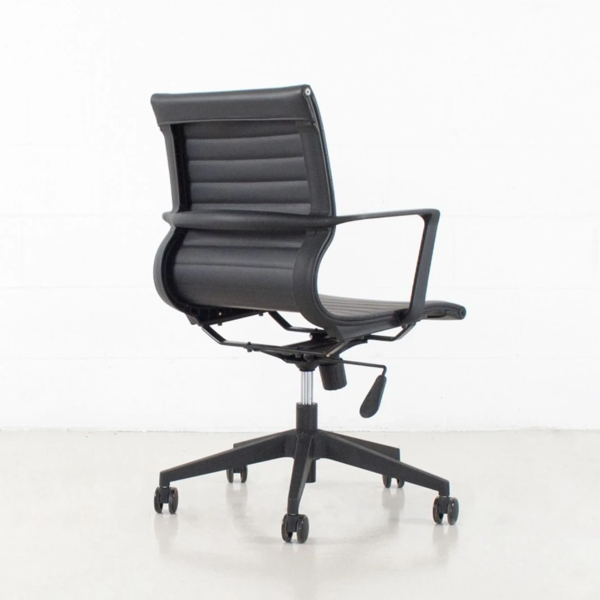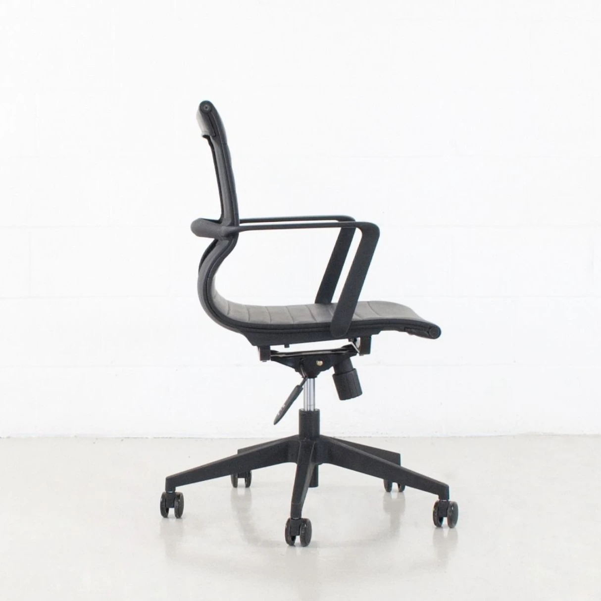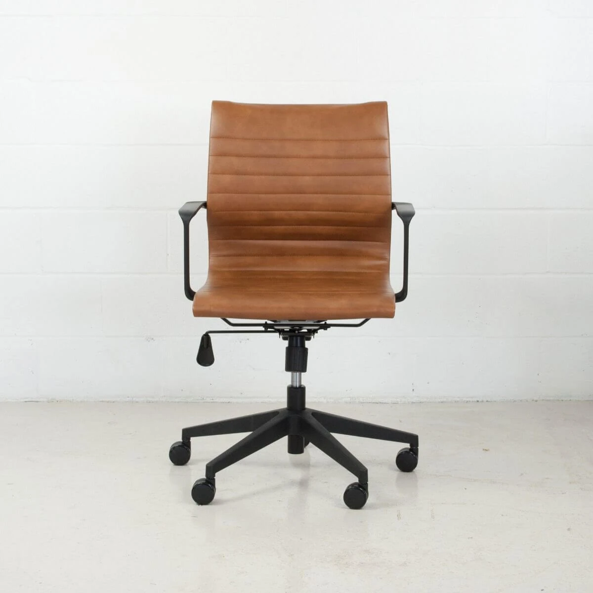The Low Back Office Chair is perfect for the home office or “work” office. It’s available in 4 leatherettes all on a black adjustable nylon frame. The tan and stone are new at DesignRepublic.