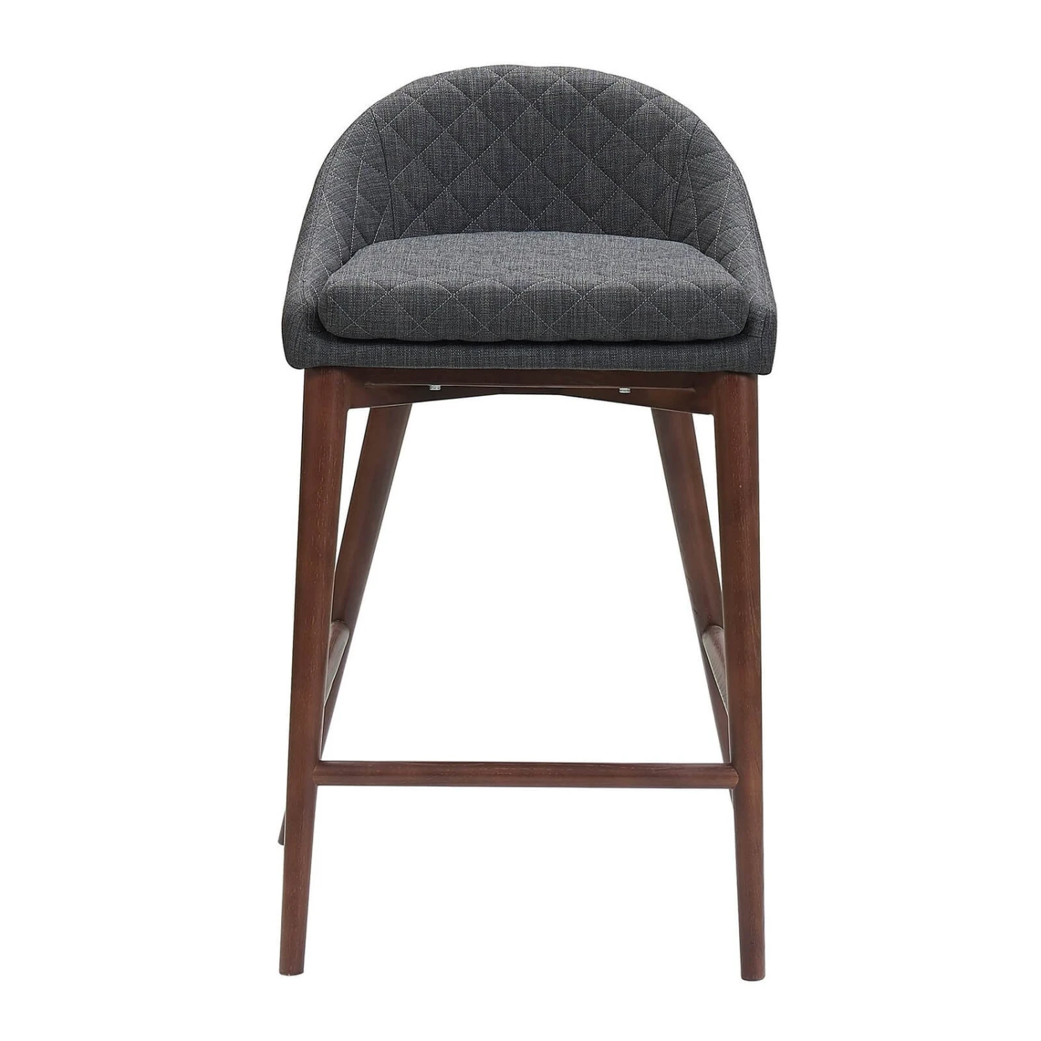 The Mila Counter Stool is available in dark grey 100% polyester fabric that has a modern subtle diamond pattern. The Mila features a solid ash base in a smokey finish.