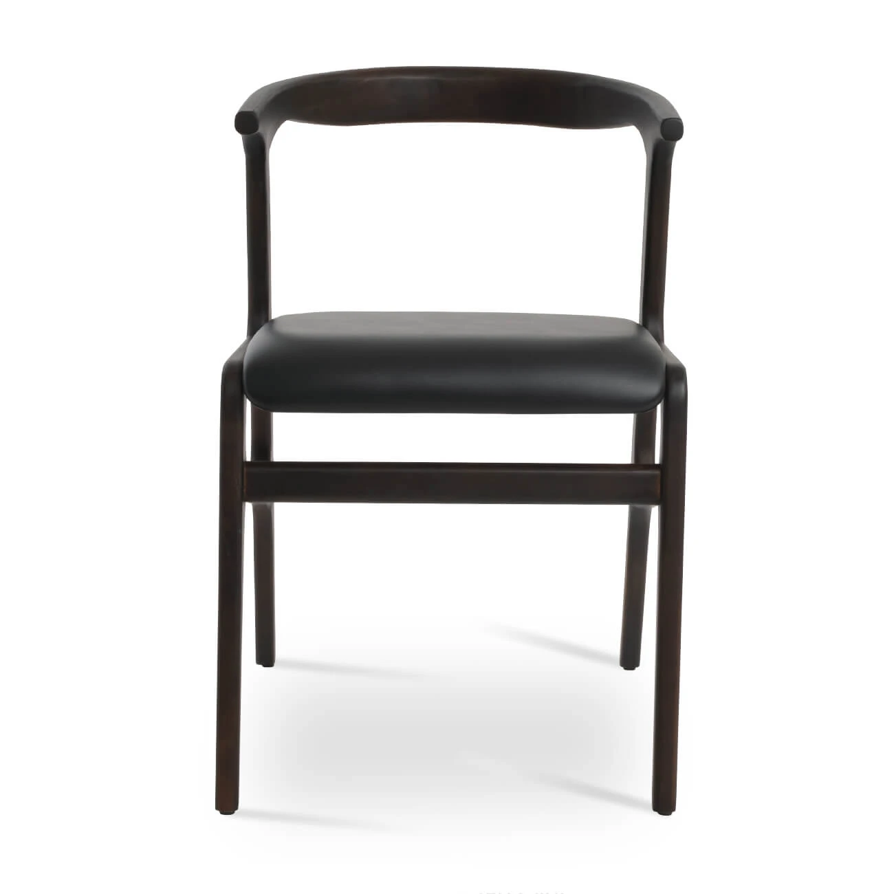 The Morelato Dining Chair is a contemporary chair with an upholstered seat and is suitable for both residential and commercial use. The Morelato Dining Chair comes with a solid ash walnut finished frame with a black upholstered leatherette seat or a solid ash black finished frame with a hazelnut upholstered leatherette seat.