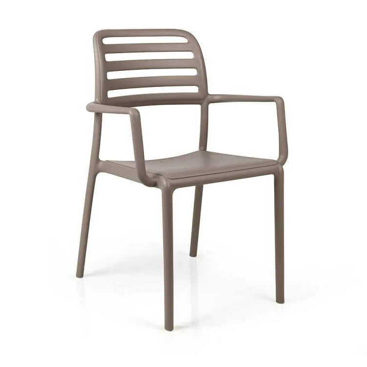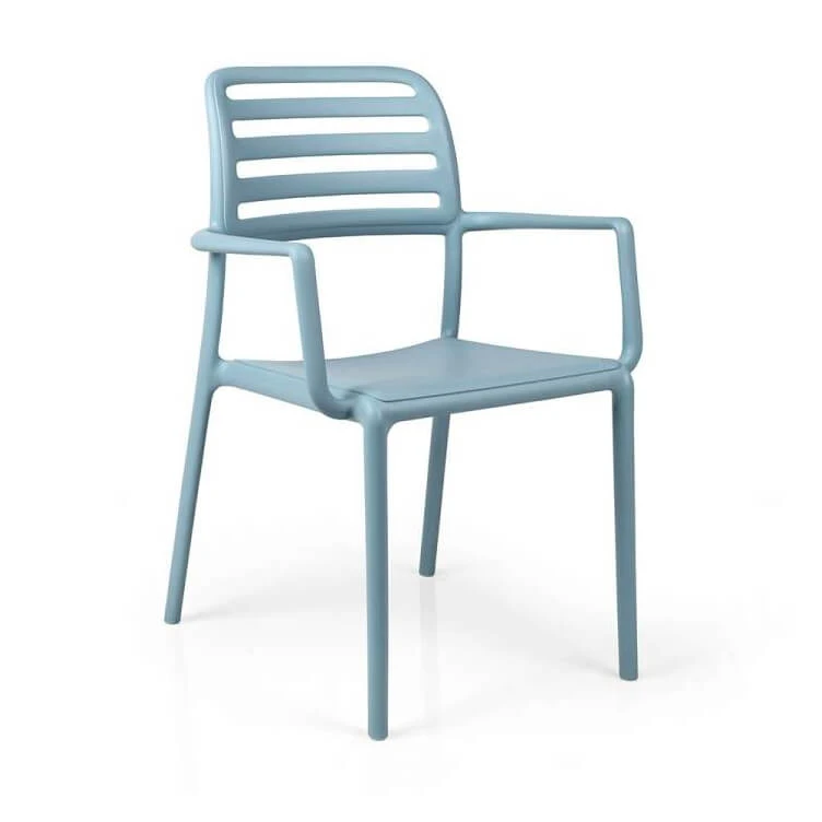The Nardi Costa Outdoor Arm Chair features clean lines and a lightweight, practical and very comfortable seat and armrests. The Costa is an outdoor arm chair with a slatted backrest made of fibreglass recyclable resin: a seamless tubular frame with a rounded profile and corners. It’s a monobloc chair that has a uniform color with a matte finish and non-slip feet.
