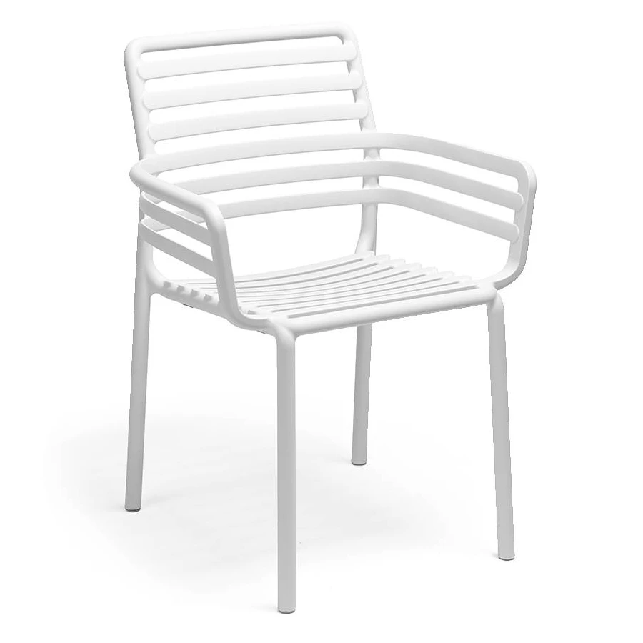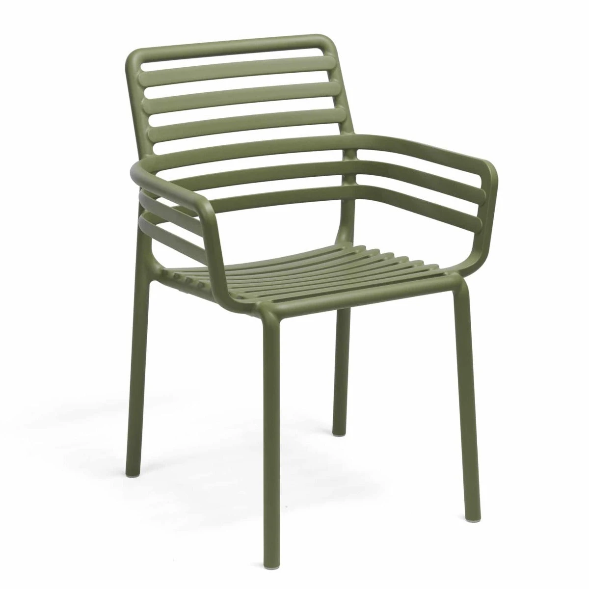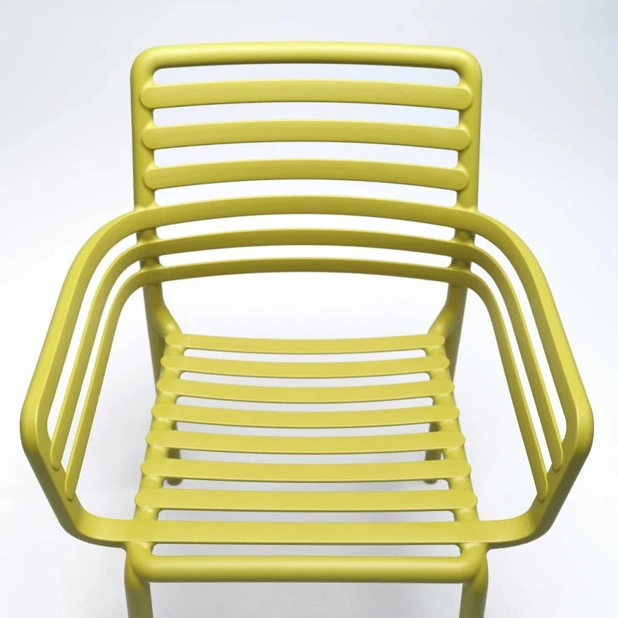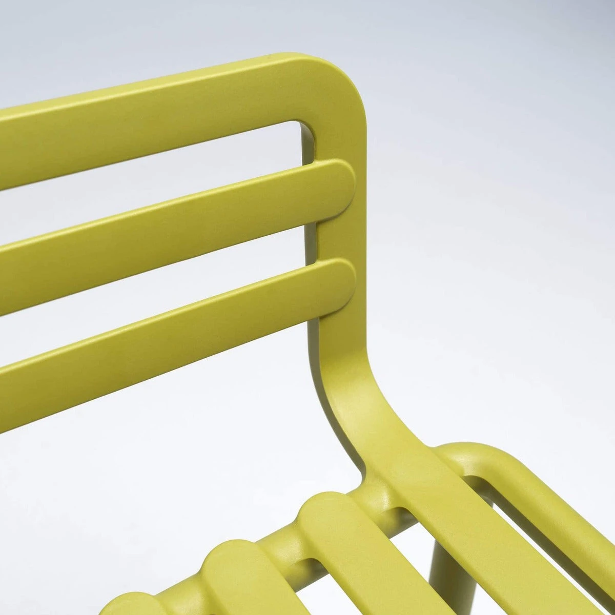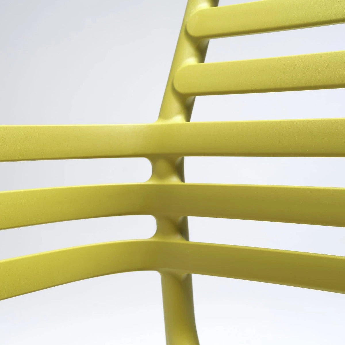 Fresh, light and ergonomic, Doga Armchair is for outdoor use and made of fiberglass resin. It is inspired by a slatted design given a contemporary twist. It is handy to move, stackable, easily sanitized and entirely recyclable.