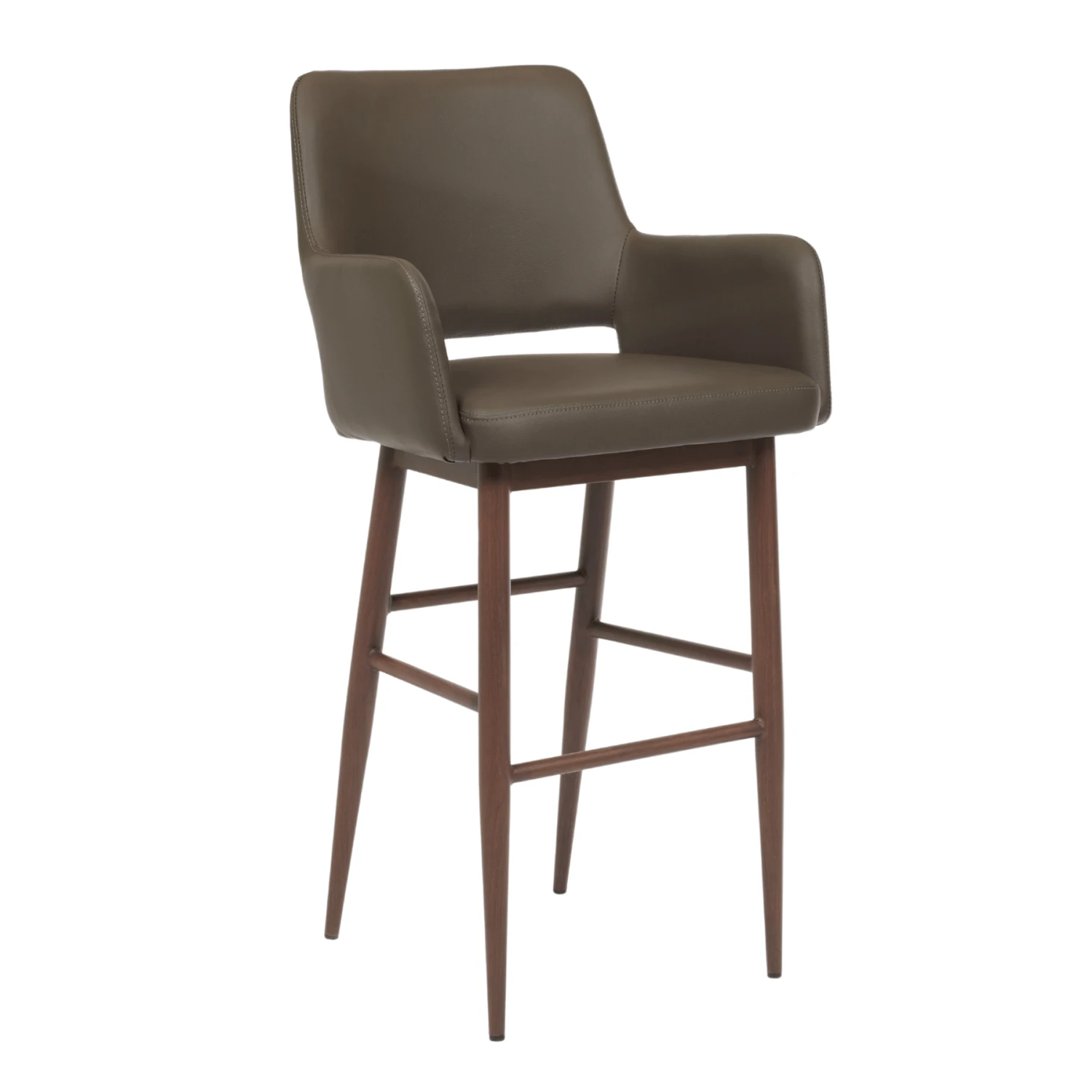 The Nate Stool is the height of strength and comfort. It’s a sturdy stool with character and is available in counter stool and bar stool heights. Choose between two leatherette colours on a metal base in a black walnut finish.