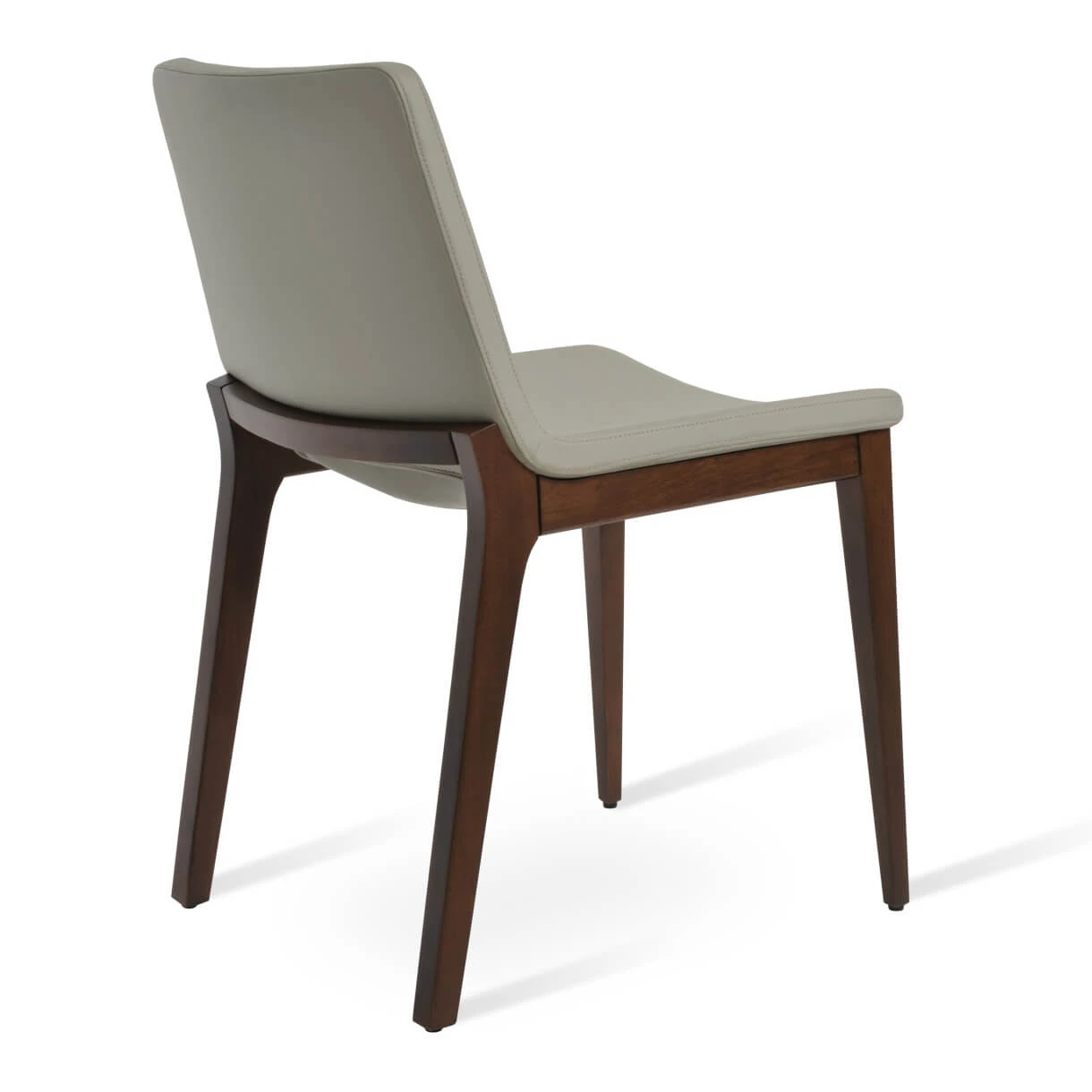 The Nevada Dining Chair is a modern dining chair with a comfortable upholstered seat and backrest on a wood base. The seat has a steel structure with “S” shape springs for extra flexibility and strength. This steel frame is moulded by injecting polyurethane foam.