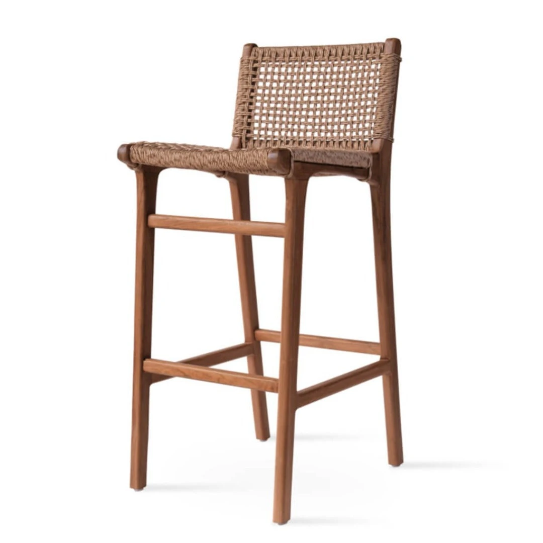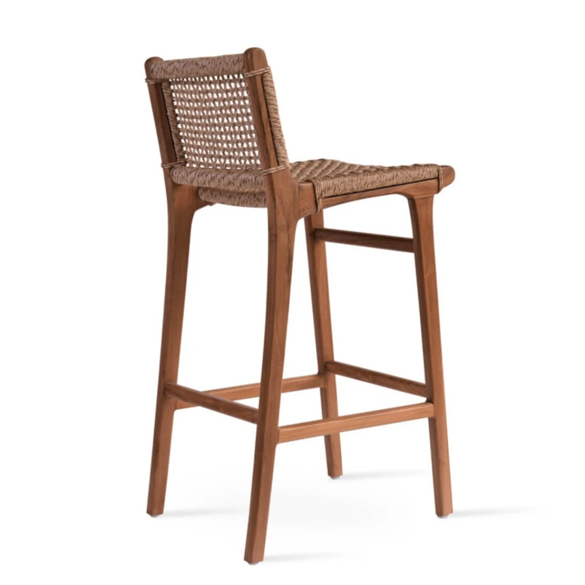 Crafted using Indonesian grade A teak wood and Viro fiber wicker that is highly durable in any temperatures. Appropriate for heavy commercial use, these grade A teak bar stools are constructed of large teak timbers with sturdy mortise and tenon joinery.
