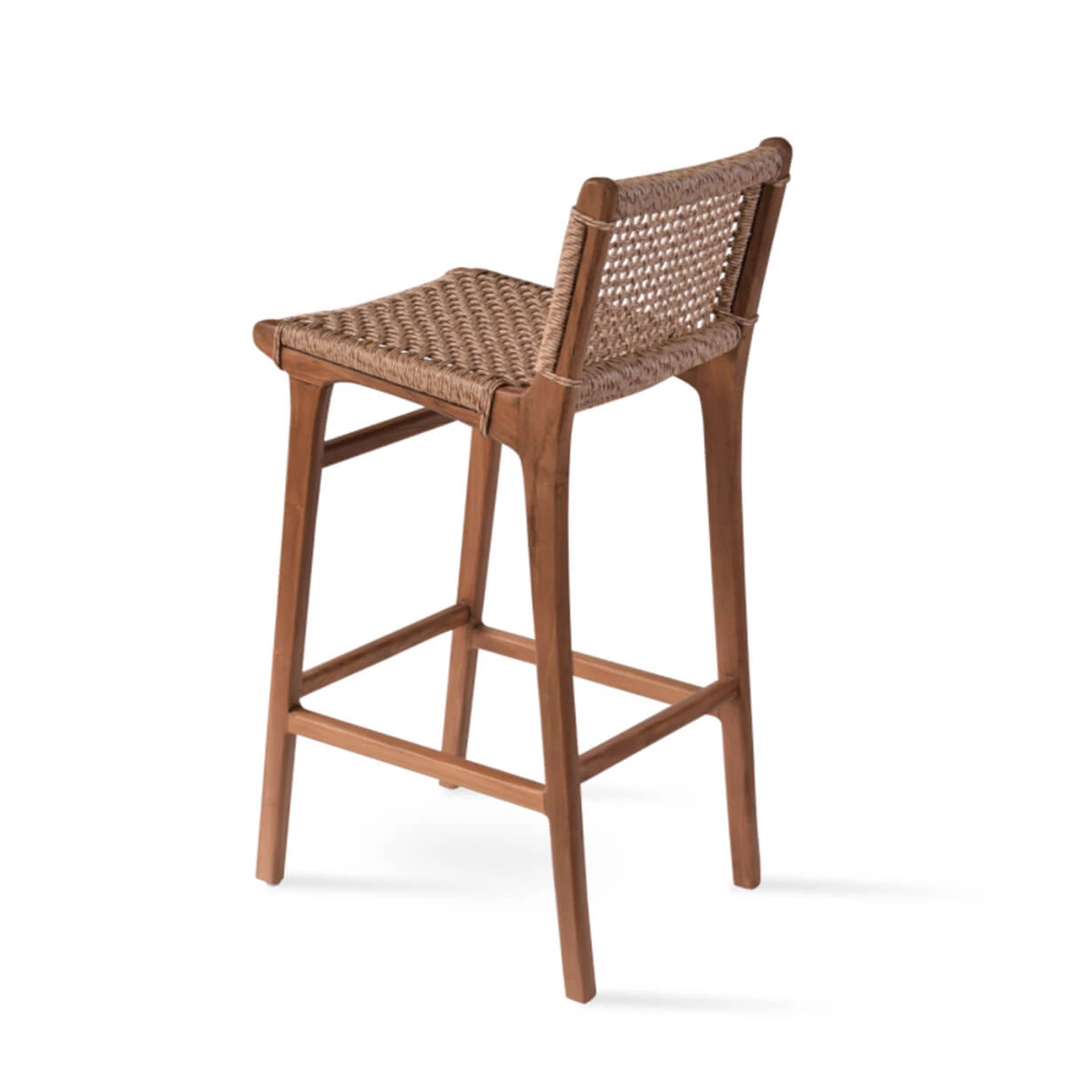 Synthetic rope knitted chair on Teak frame. The Paramus Teak Bar Stool can be easily used outdoors, and will make a difference with its stylish and modern appearance. The chair with Scandinavian retro design gives this club chair a very distinct looks that are almost impossible to match.