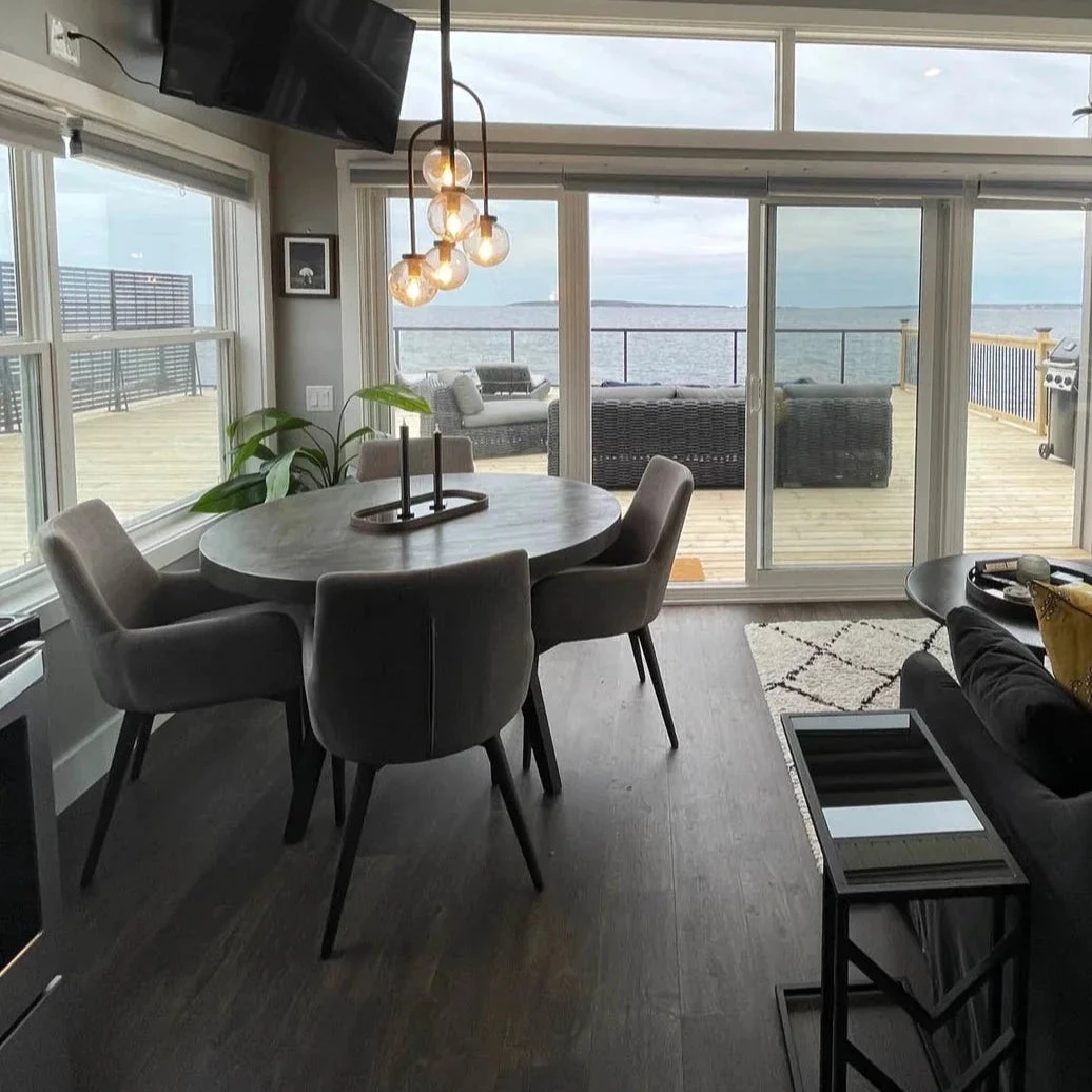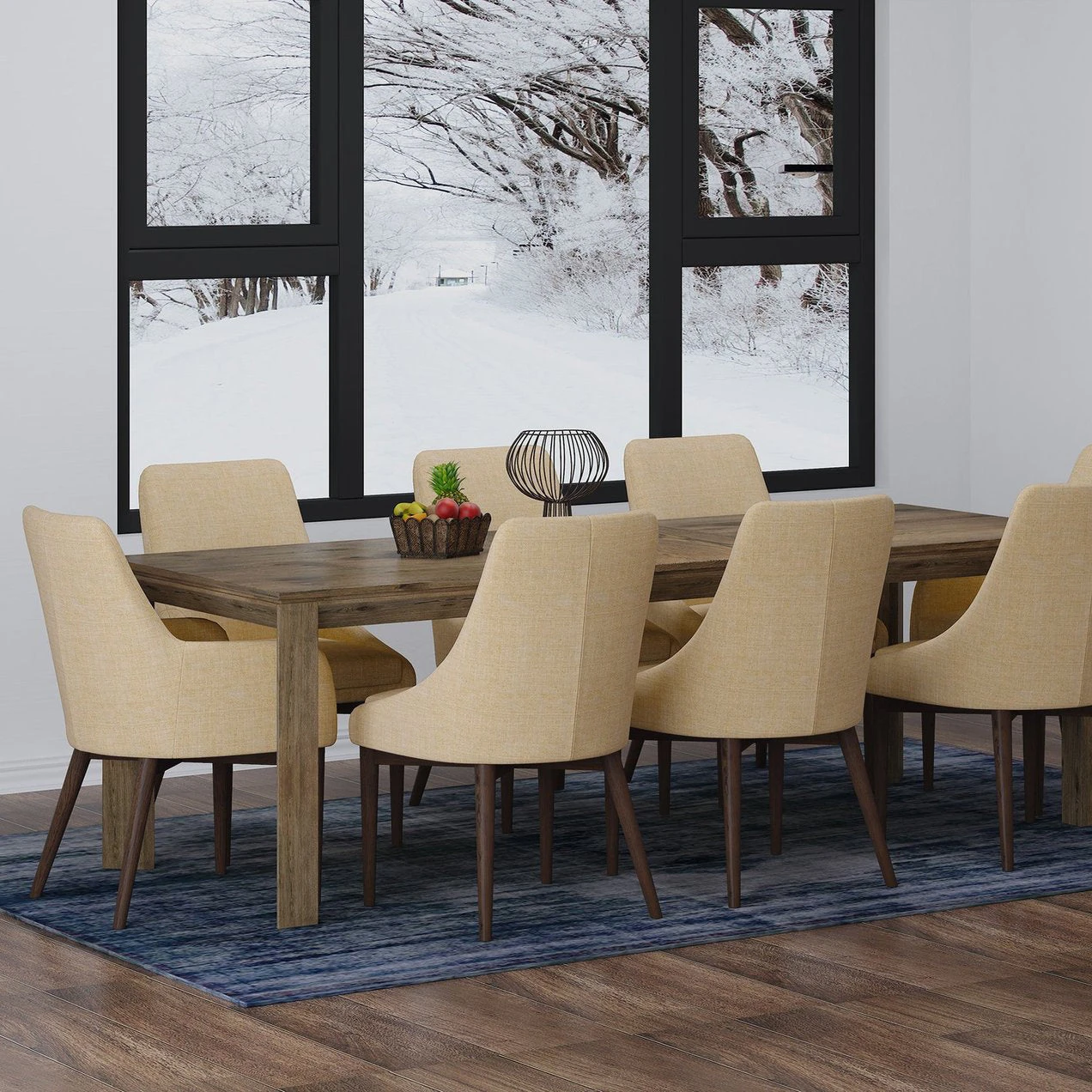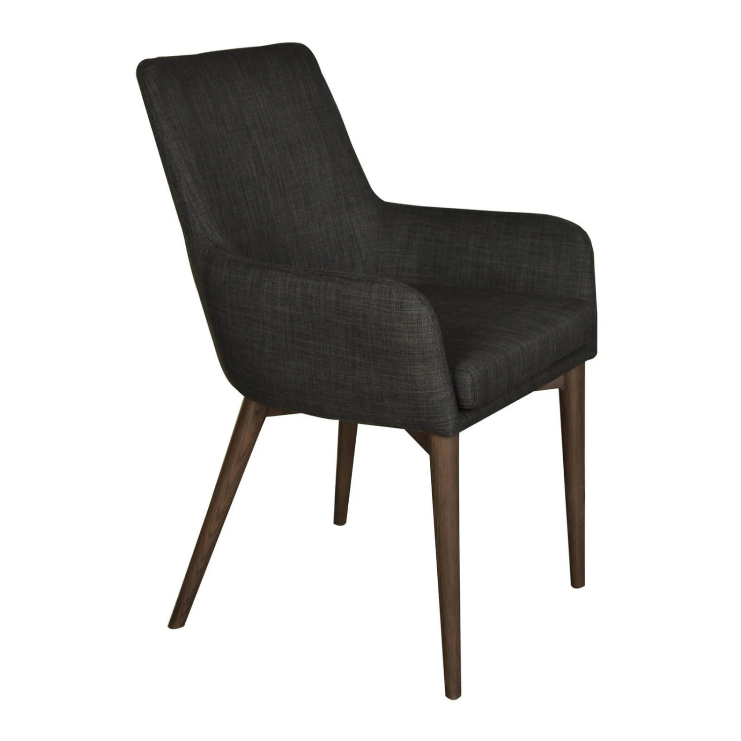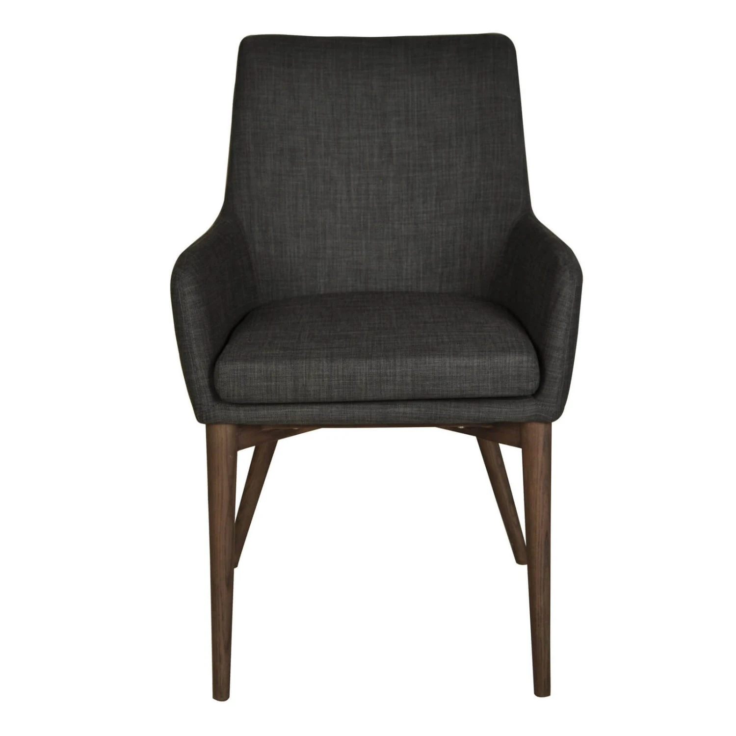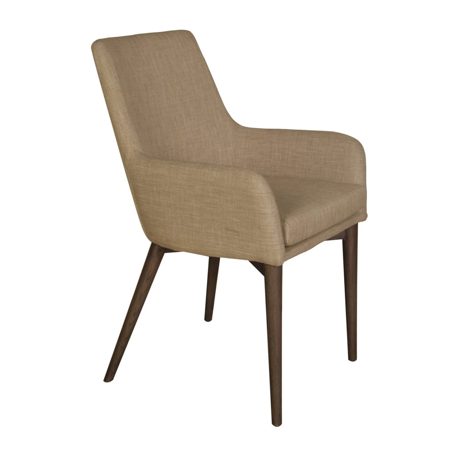 The Reid Arm Chair is a contemporary arm dining chair with ash legs and a fabric seat. The seat cushion has a removable cover for easy cleaning.