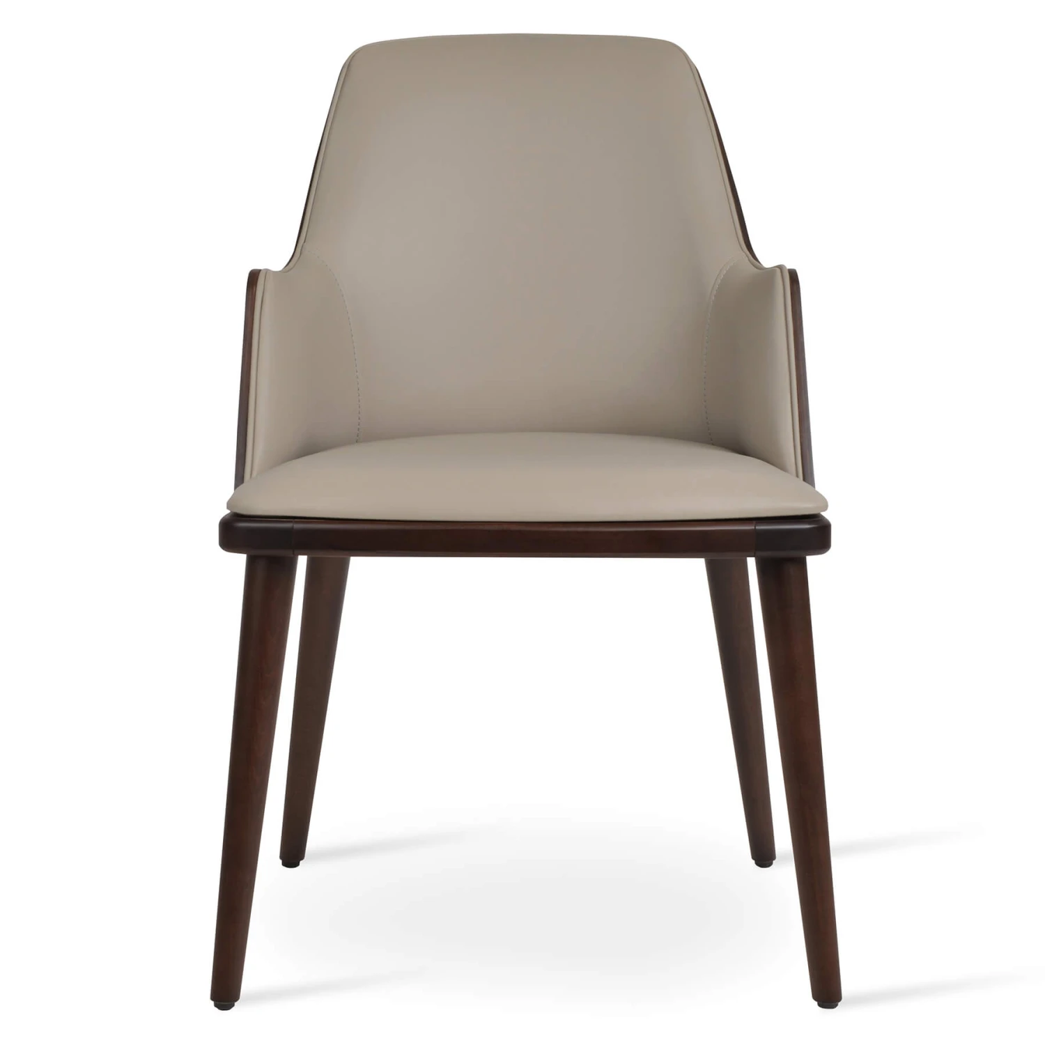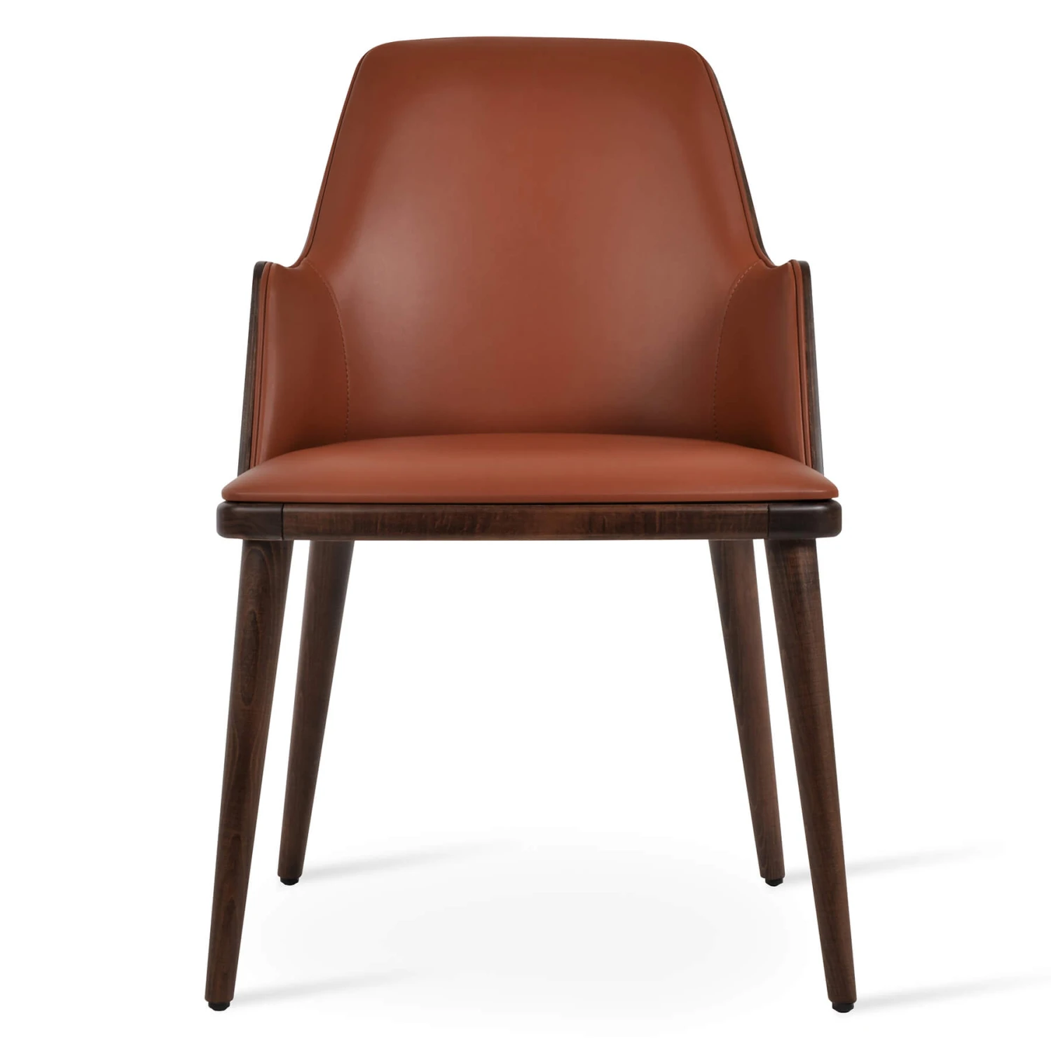 The Romano-W Armchair is a contemporary chair with a upholstered seat with an American plywood walnut veneer back. The legs are finished in solid beech walnut finish. Romano-w Armchair is suitable for both residential and commercial use. It’s available in three PPM leatherette colours.
