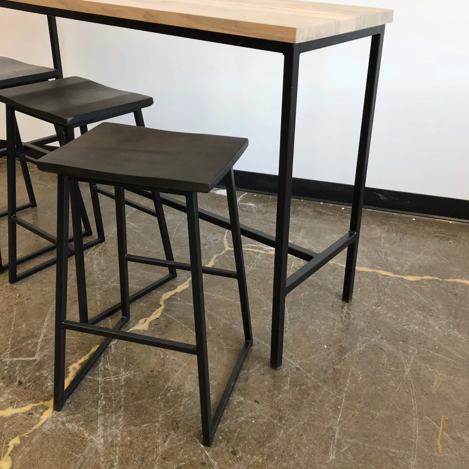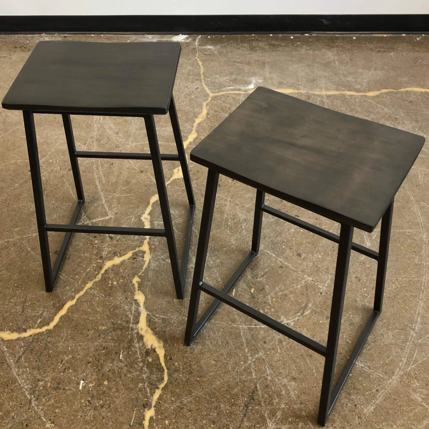The Rufus Stool is a Canadian-made stool that’s available in counter stool and bar stool heights. It features a maple scooped seat on a powder-coated metal leg base. Choose your seat stain and leg colours.