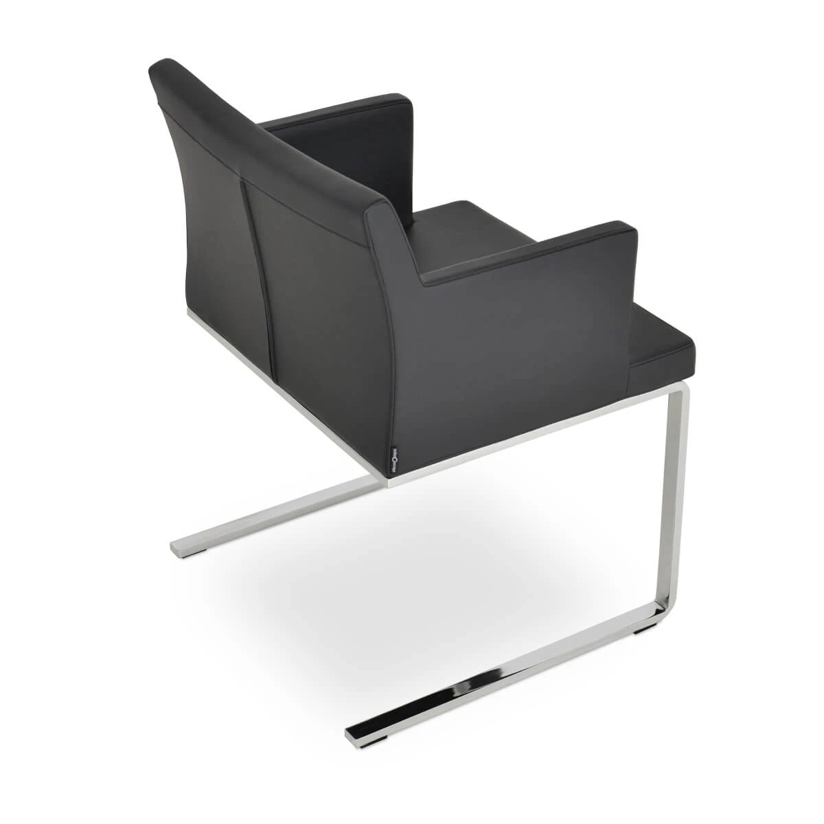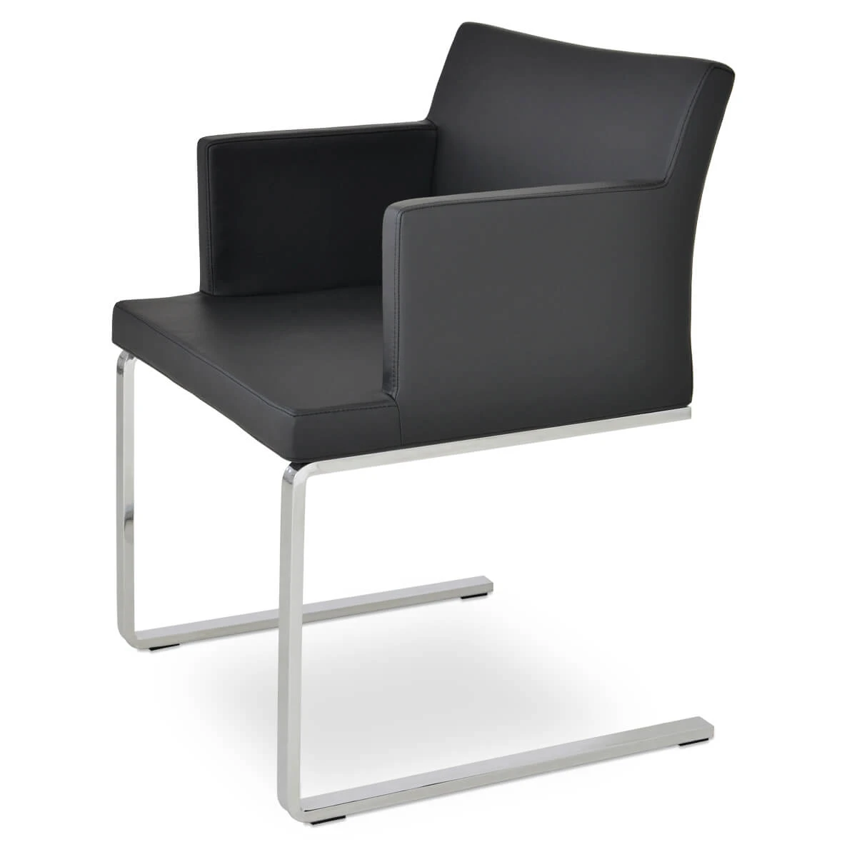 The Soho Flat Arm Chair is an elegant armchair designed ideally for lounge and waiting areas. The chair has a comfortable upholstered seat and backrest on a chrome solid steel sled leg with embedded plastic gliders on the bottom. This steel frame is moulded by an injecting polyurethane foam.