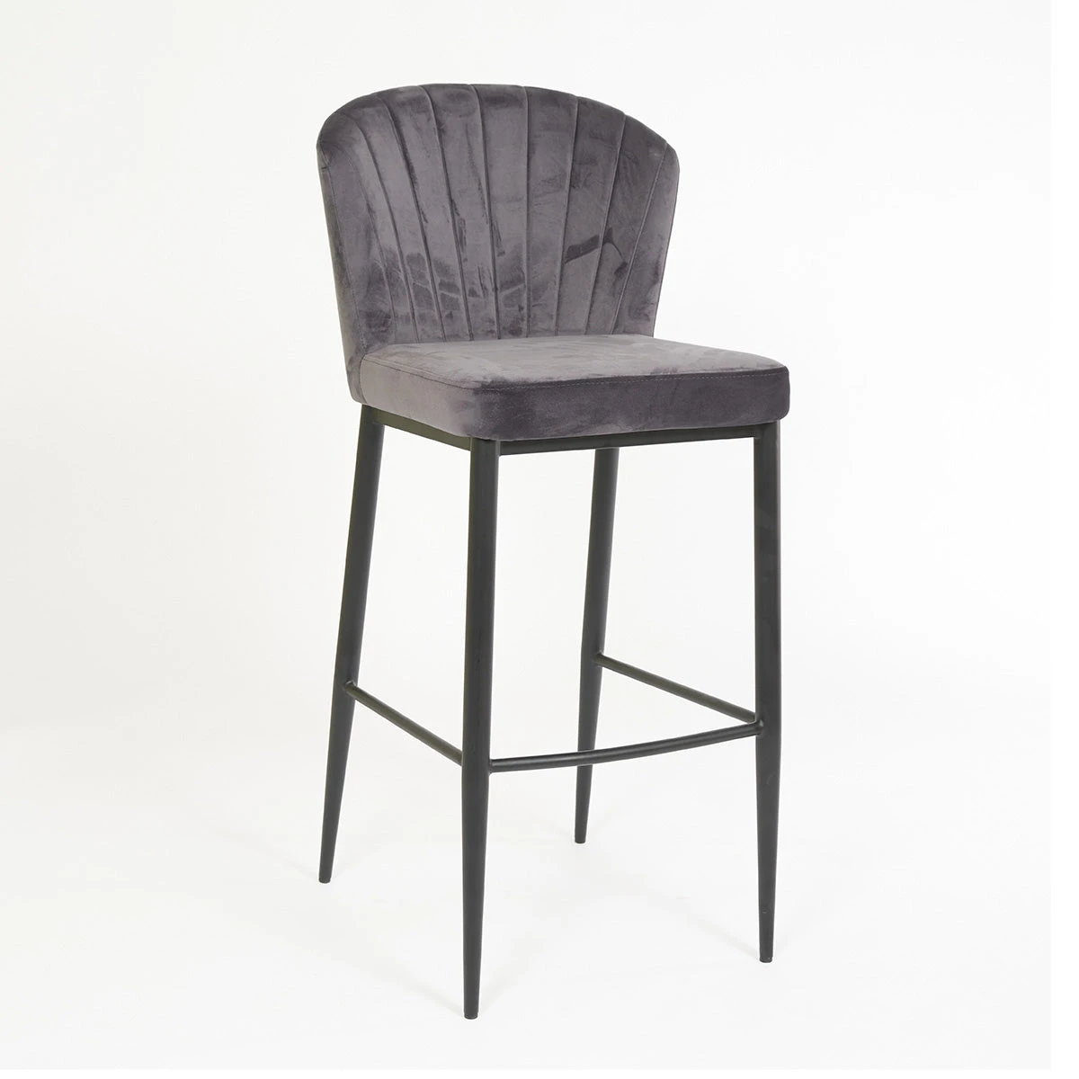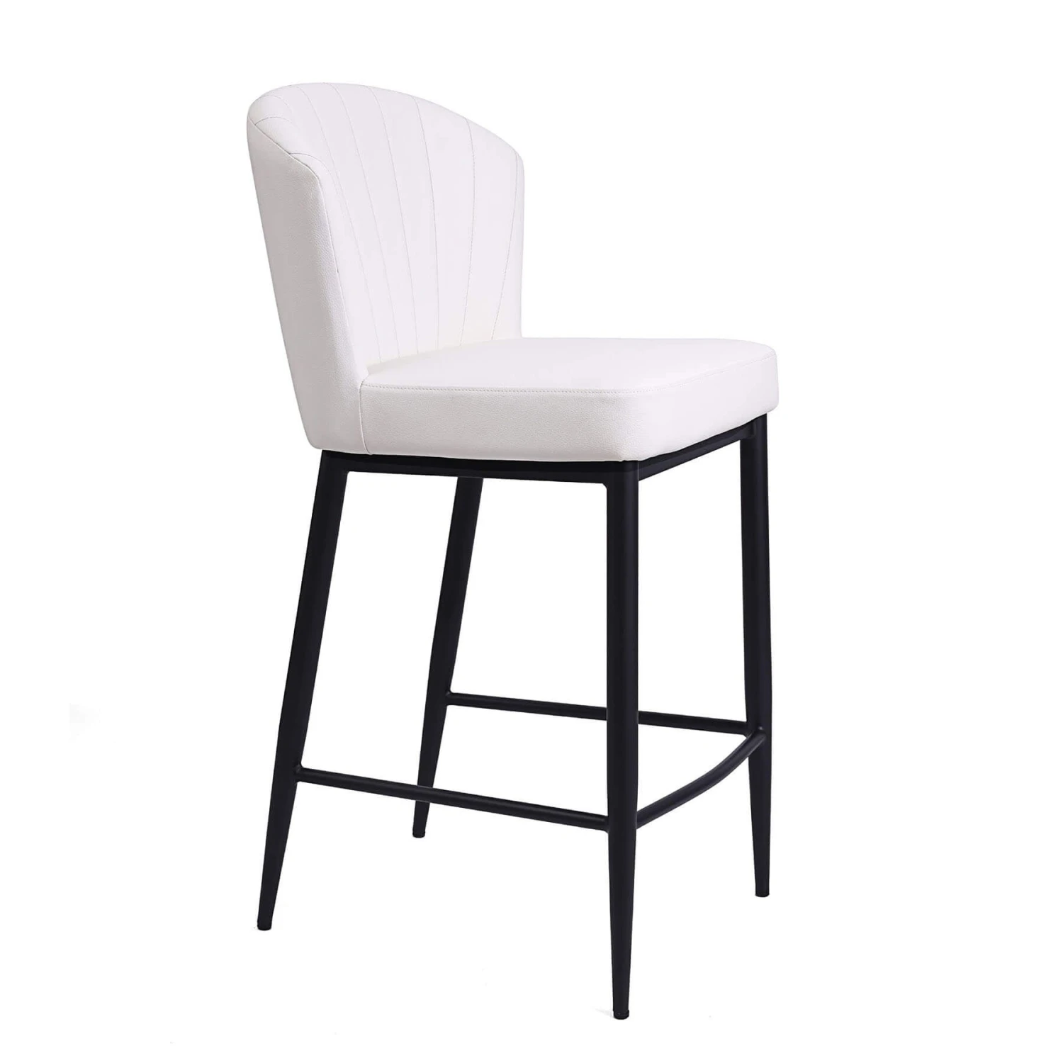 The Sonia Counter Stool features a smooth, contemporary look, boasting a thick foam seat and sharp winged feature. It’s crafted with comfort in mind and is available in dove and graphic fabric, and white and grey leatherette options on a matte black base.