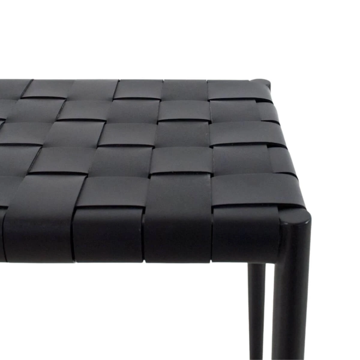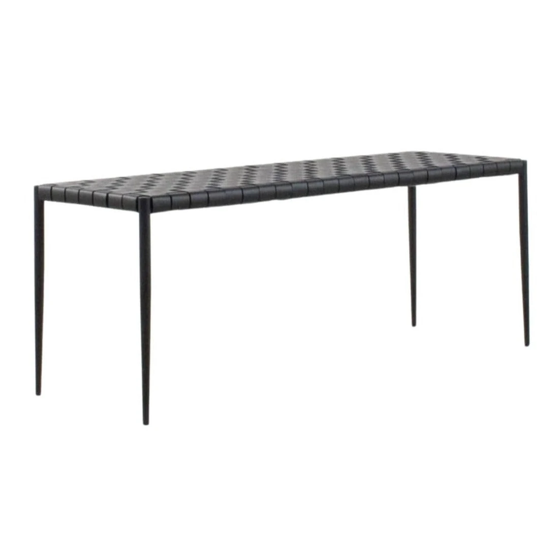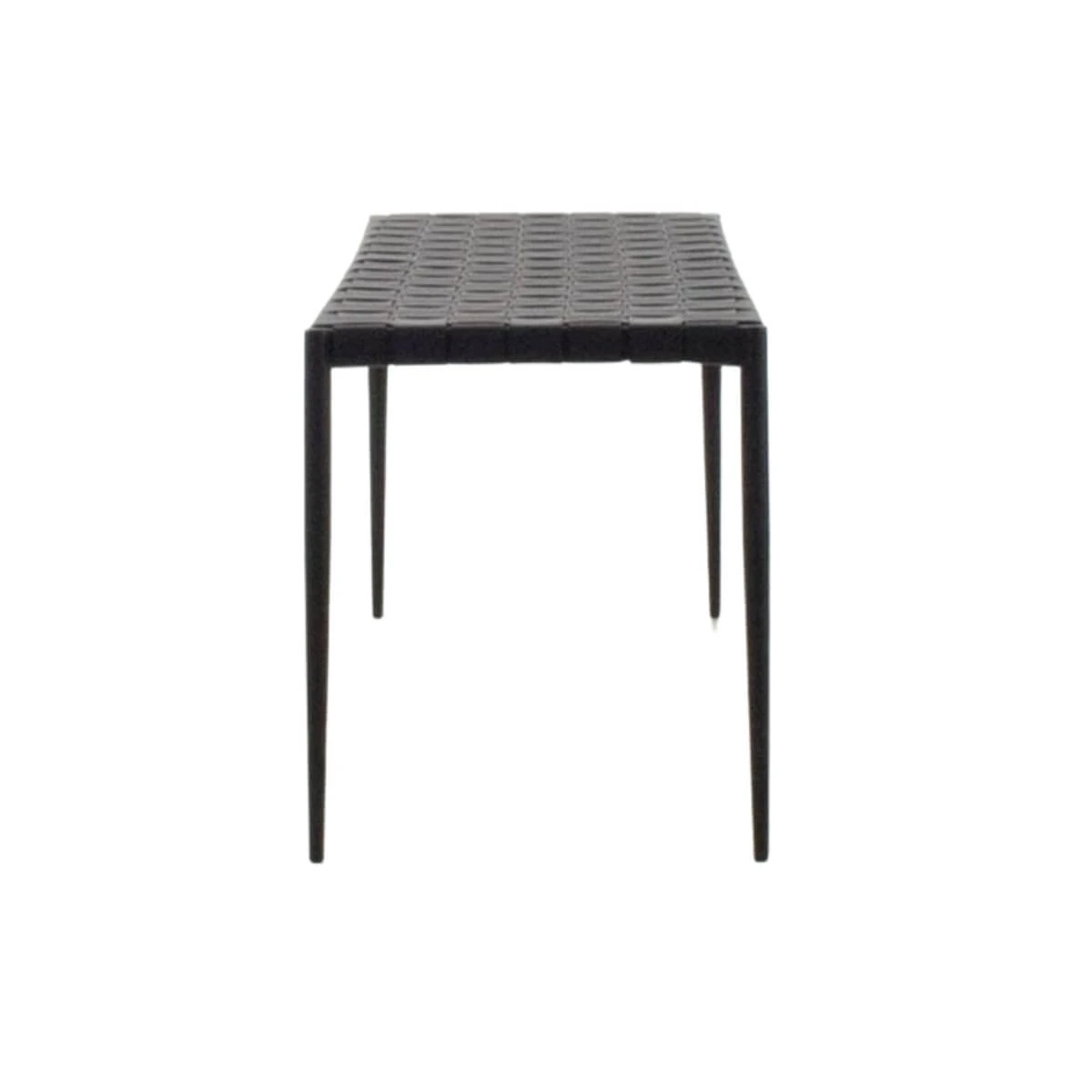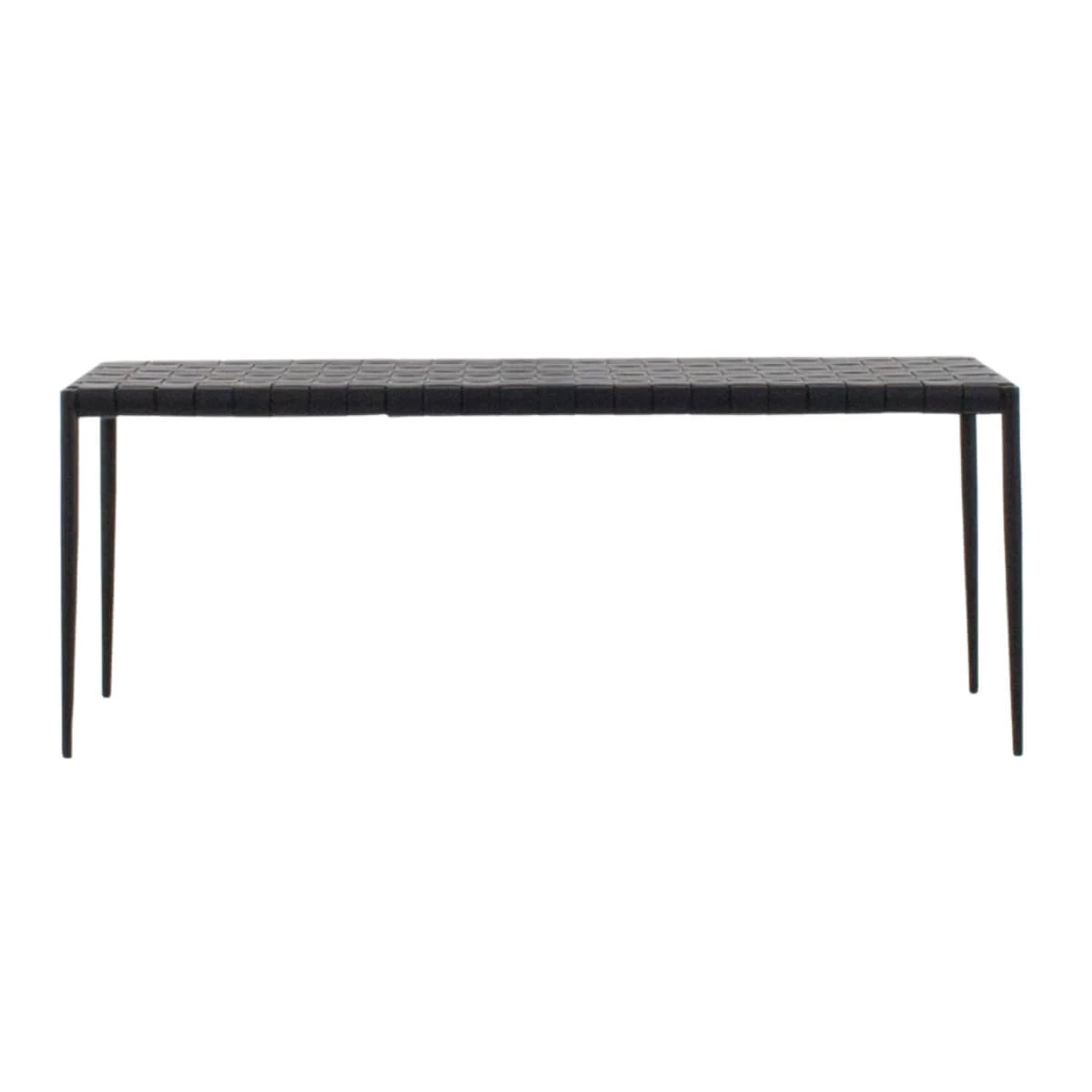 The Titus Bench has a black or sand leather strap seat with a black metal powder-coated base. It’s a cool, sleek, and modern bench that would look incredible as a dining bench, entryway bench, or in any other funky space.